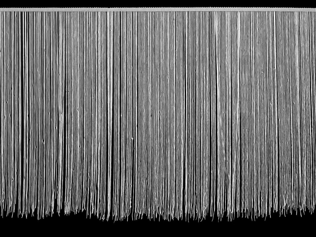 Ozdobné extra dlouhé třásně jsou několikrát prošité fixační nití, aby se nezamotaly. Po našití nit odstraňte. Díky délce třásně využijete na šití tanečních kostýmů, šatů, sukní nebo závěsů.- Šíře: 100 cm