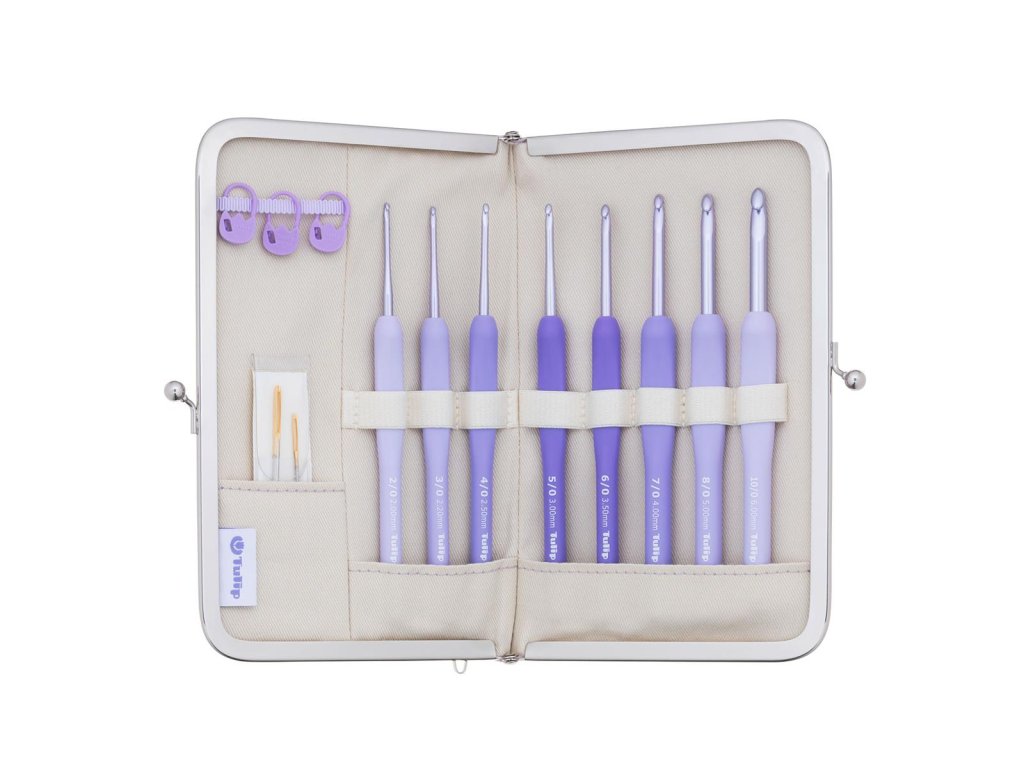 Tato sada háčků Murasaki obsahuje 8 háčků na háčkování ve velikostech :