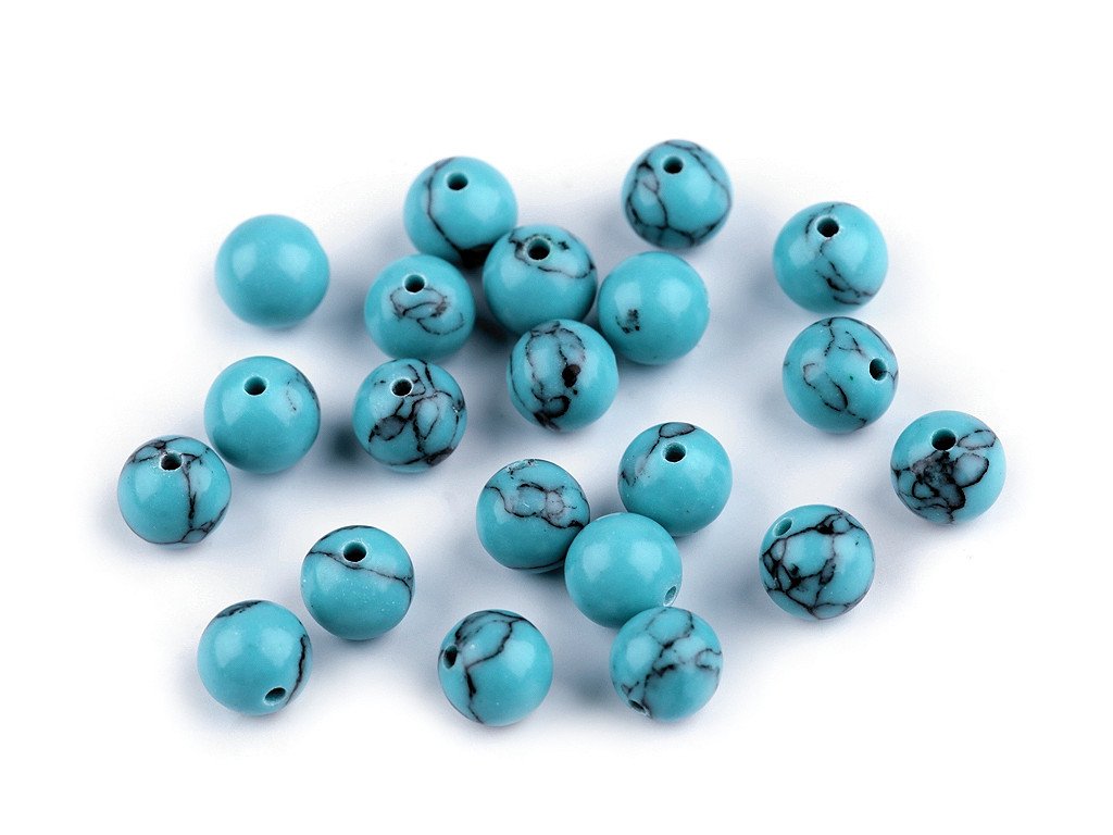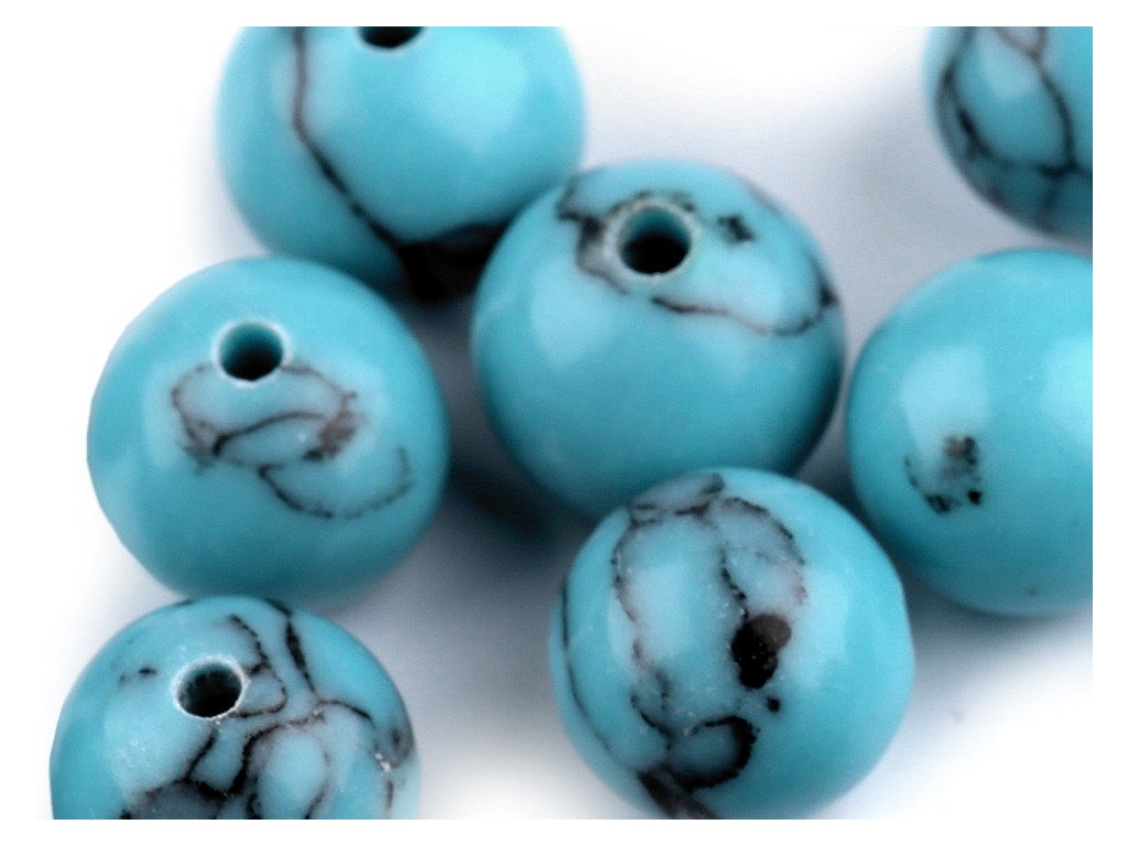 Korálky z Tyrkenitu jsou oblíbené šperkaři pro svou jedinečnou kresbu. Jejich velikost je ideální na výrobu Buddhových náramků. Jsou oblíbené na techniku drátování, v kombinaci s drahými kovy, ale i s obyčejnými drátky. Skvěle vypadají i na jednoduchých návlekových šňůrách, které zajímavě ozvláštní. Korálky jsou uměle dobarvené.- Průměr: 8 mm