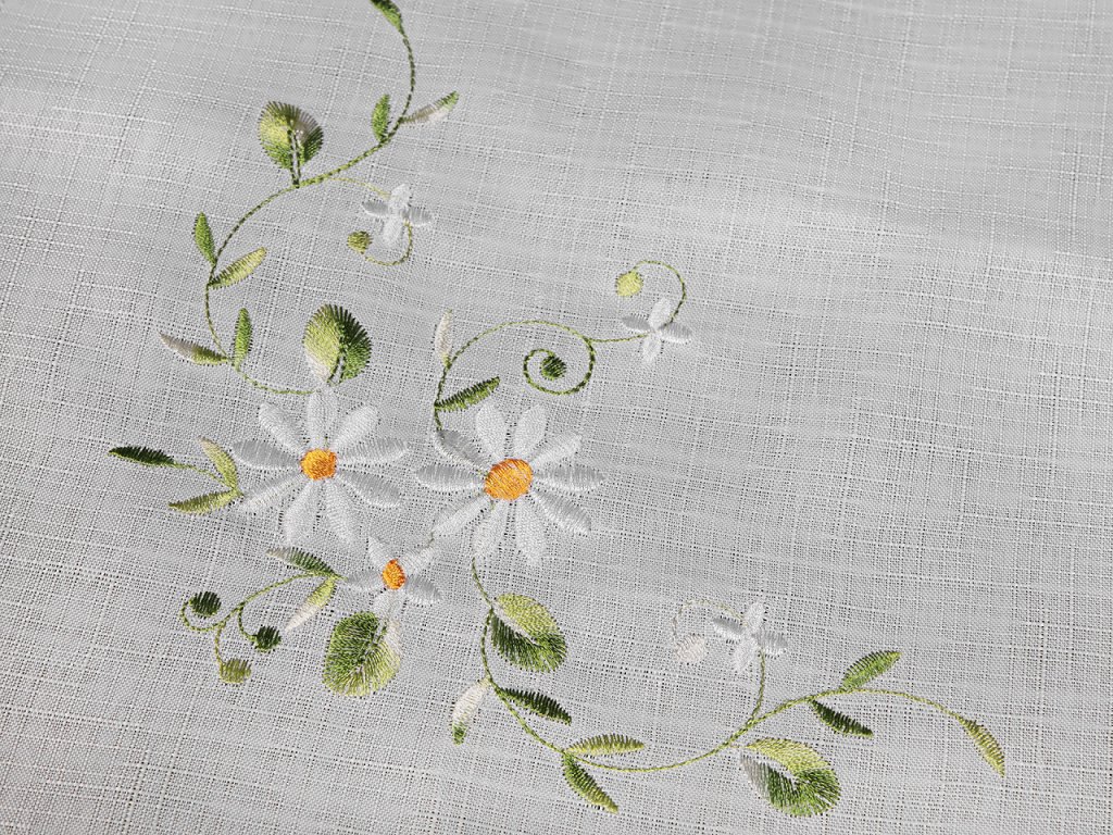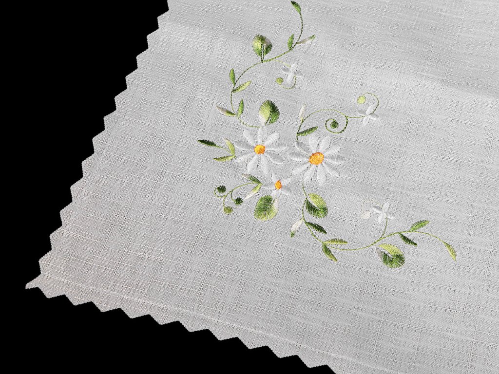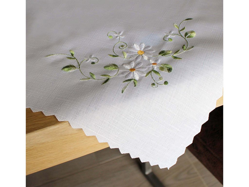 Textilní ubrus se strojovou výšivkou květů je nádherným doplňkem pro každou jídelnu či obývací pokoj. Jeho jemné vyšívání a elegantní design dodávají každému stolování příjemný vzhled. Je ideální volbou pro každodenní použití i slavnostní příležitosti. Skvěle se hodí na sváteční stoly, rodinné oslavy nebo romantické večeře. Je vhodný pro kombinaci s širokou škálou porcelánu, skla či příborů, a to jak v moderním, tak i tradičním stylu. Je jednostranný, vyrobený z kvalitního textilu, který je pevný a odolný. Okraje má zakončené zoubky.- Rozměry: 86 x 86 cm