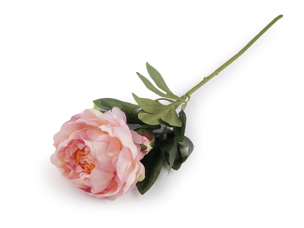 Umělá pivoňka vám romanticky doladí vázy, květinová aranžmá i věnce. Stonek je plastový, s drátem uvnitř. Najdete na něm bohatý textilní květ a poupě.- Délka: 65 cm