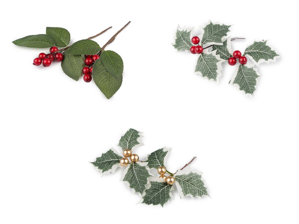Malá umělá větvička oživí podzimní a zimní aranžmá. Můžete ji zakomponovat do květinových vazeb, věnců nebo květináčů. Drátek umožňuje snadnou manipulaci a upevnění do různých aranžmá. Varianta č. 1 je se šípky. Varianta č. 2 a 3 je cesmína s bobulemi.- Délka: č. 1: 16 cm