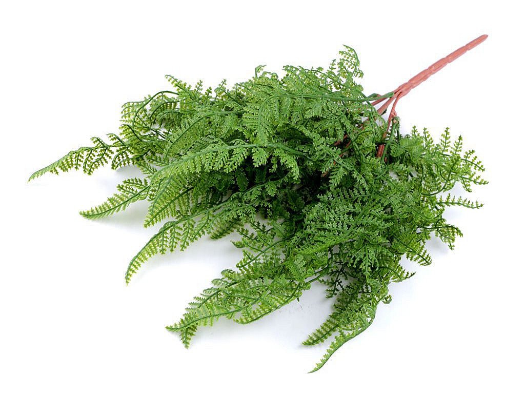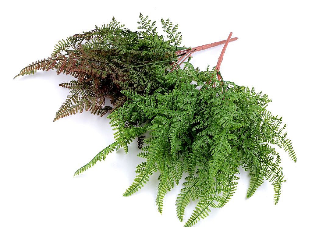 Větvička kapradiny působí skoro jako živá. Jednotlivé větvičky lze tvarovat. Kapradiny se budou vyjímat na dekoračních věncích, v květinových vazbách nebo ikebanách. Důvod 2. jakosti - větvičky jsou vyrobené z jemného plastu, který může být místy polámaný a může mírně opadat.- Délka: 45 cm