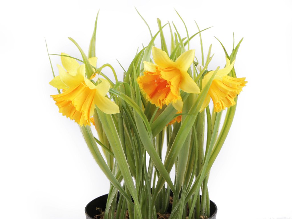 Umělé narcisy v květináči mají na rozdíl od živých mnohem delší životnost. Během jara a velikonočních svátků zútulní každý interiér. Květináč má dobrou stabilitu. Průměr květu je cca 4,5 cm, jeho délka je cca 3 cm. Průměr květináče je 9 cm, jeho výška je 7,5 cm.- Celková výška: 20 cm