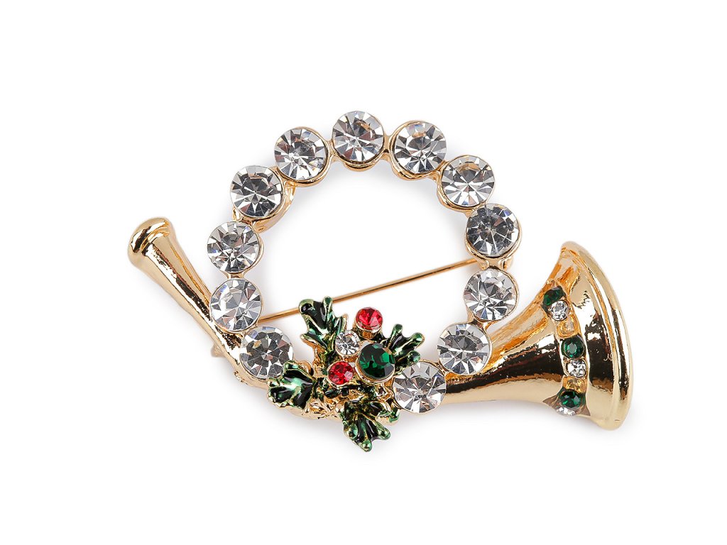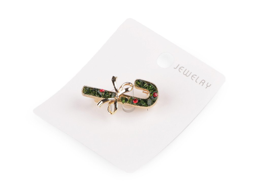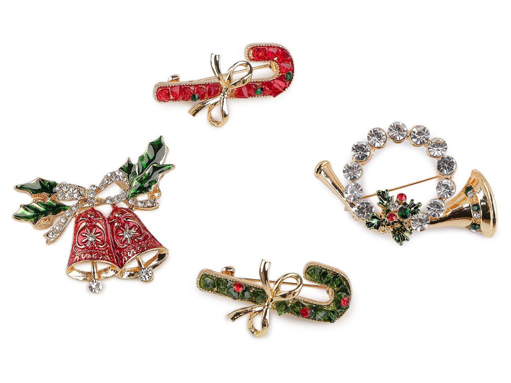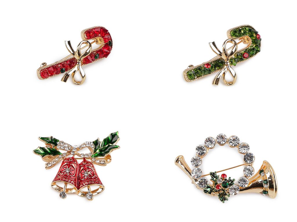 Elegantní vánoční brož bude zajímavým doplňkem vašeho oděvu. Díky třpytivým broušeným kamínkům skvěle dozdobí košile, saka, svetry, kabelky či čepice. Brož má vzadu brožový špendlík. Je na plastové kartě, která se dá zavěsit na prodejní stojany.- Rozměry: č. 1 a 2: 1,8 x 3,5 cm