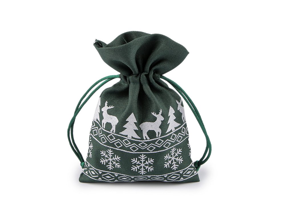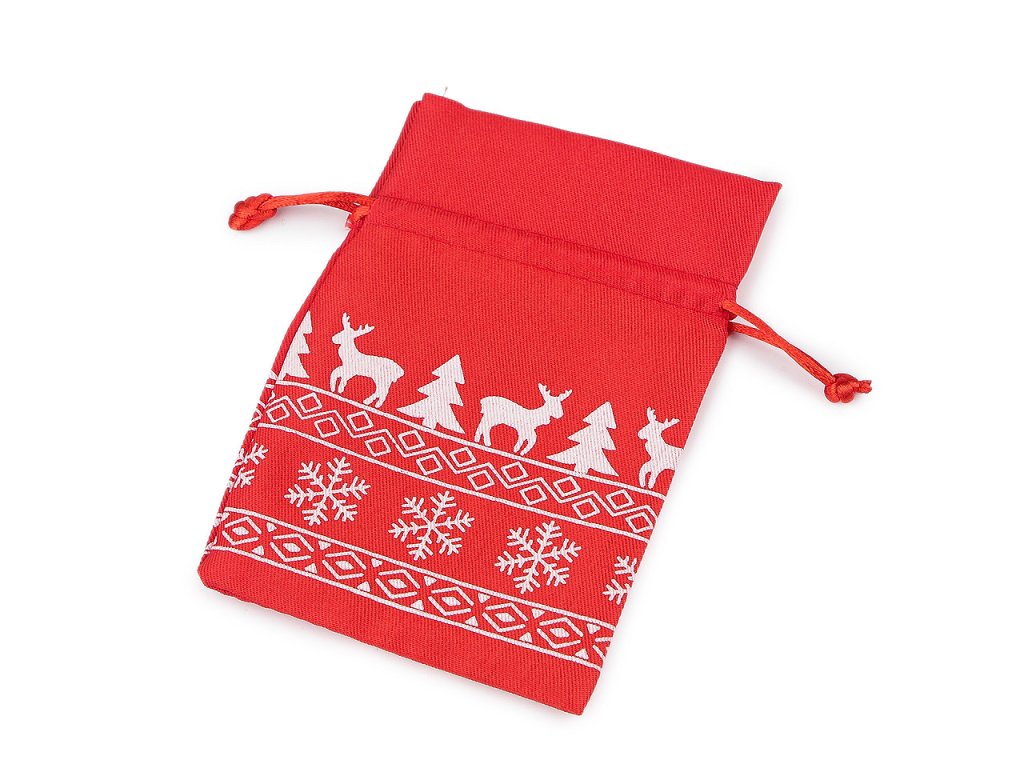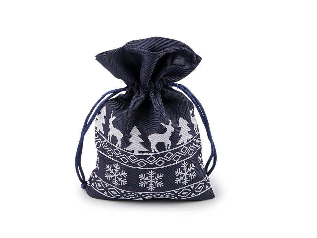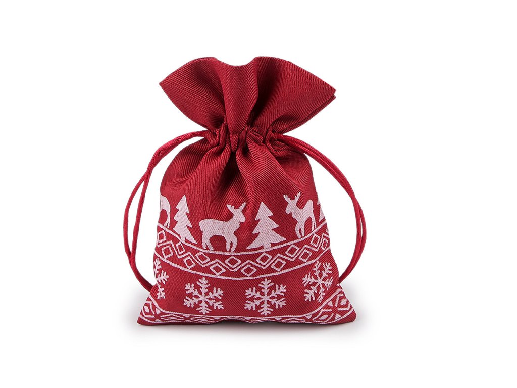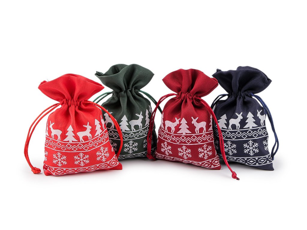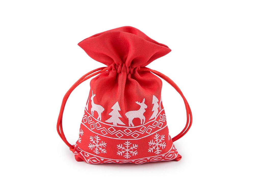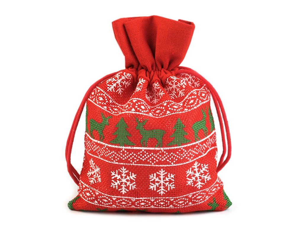 Vánoční dárkový pytlík je z obou stran ozdobený potiskem sobů, stromečků a vloček. Můžete ho použít na dárky nebo ho naplnit mikulášskou nadílkou, ušetří vám čas při balení. Dá se naaranžovat i jako vánoční dekorace. Stahuje se pomocí kulatých saténových šňůrek, dárku dodá osobní kouzlo a půvab.- Šíře: 10 cm