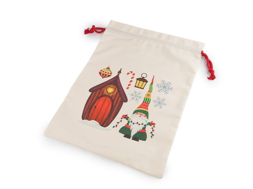 Dárkový pytlík je ideálním řešením pro stylové balení vánočních dárků. Díky jeho velikosti do něj můžete dát větší a objemnější věci. Uzavírá se pomocí stahovacích šňůrek. Potisk je jednostranný.- Šíře: 30 cm