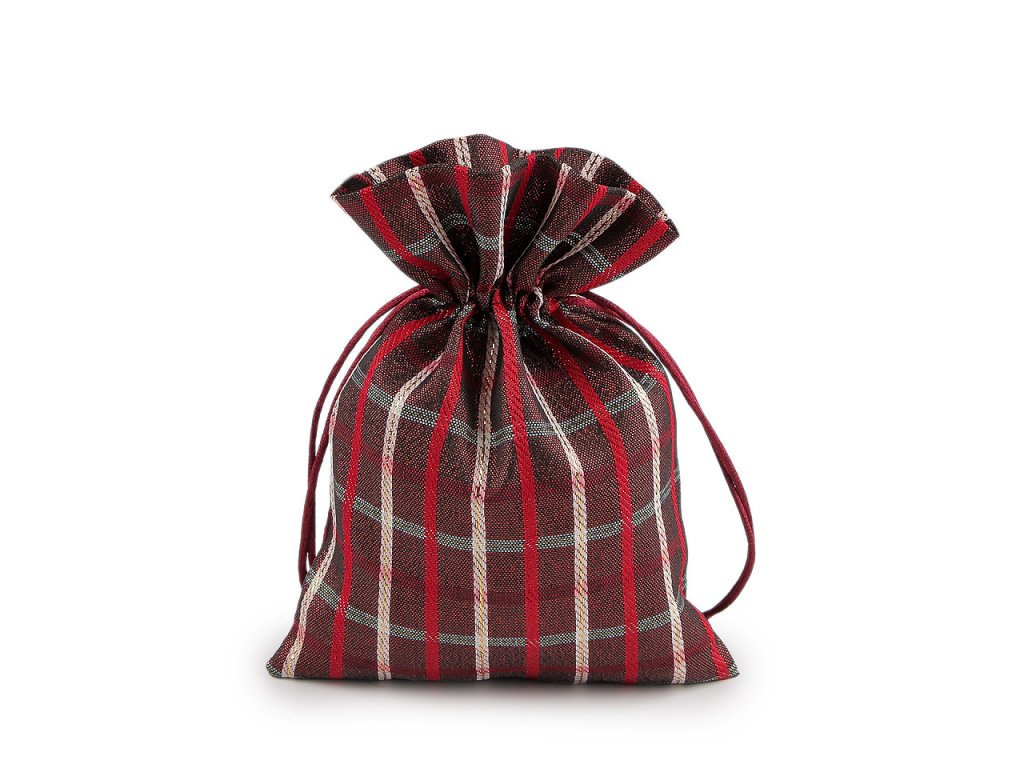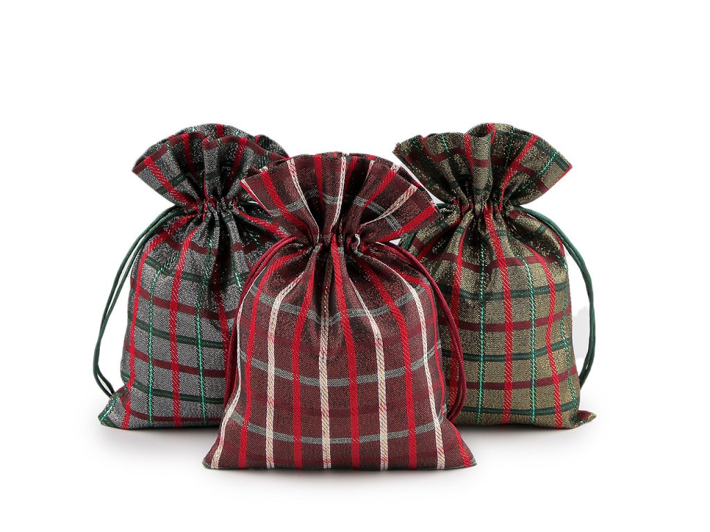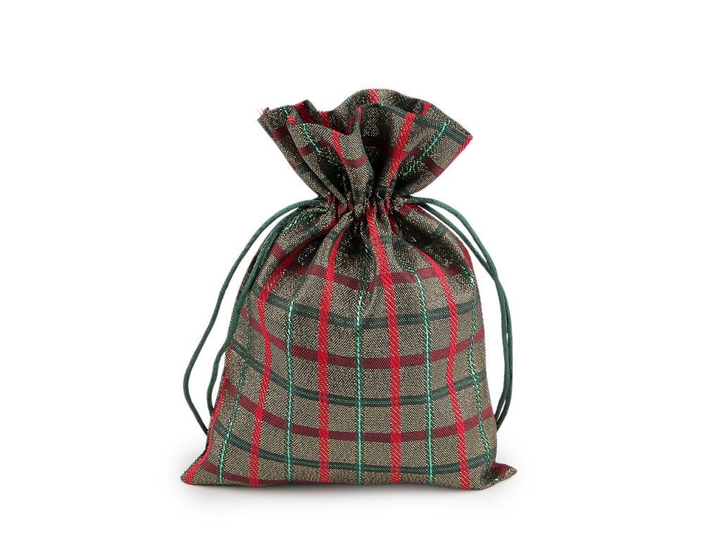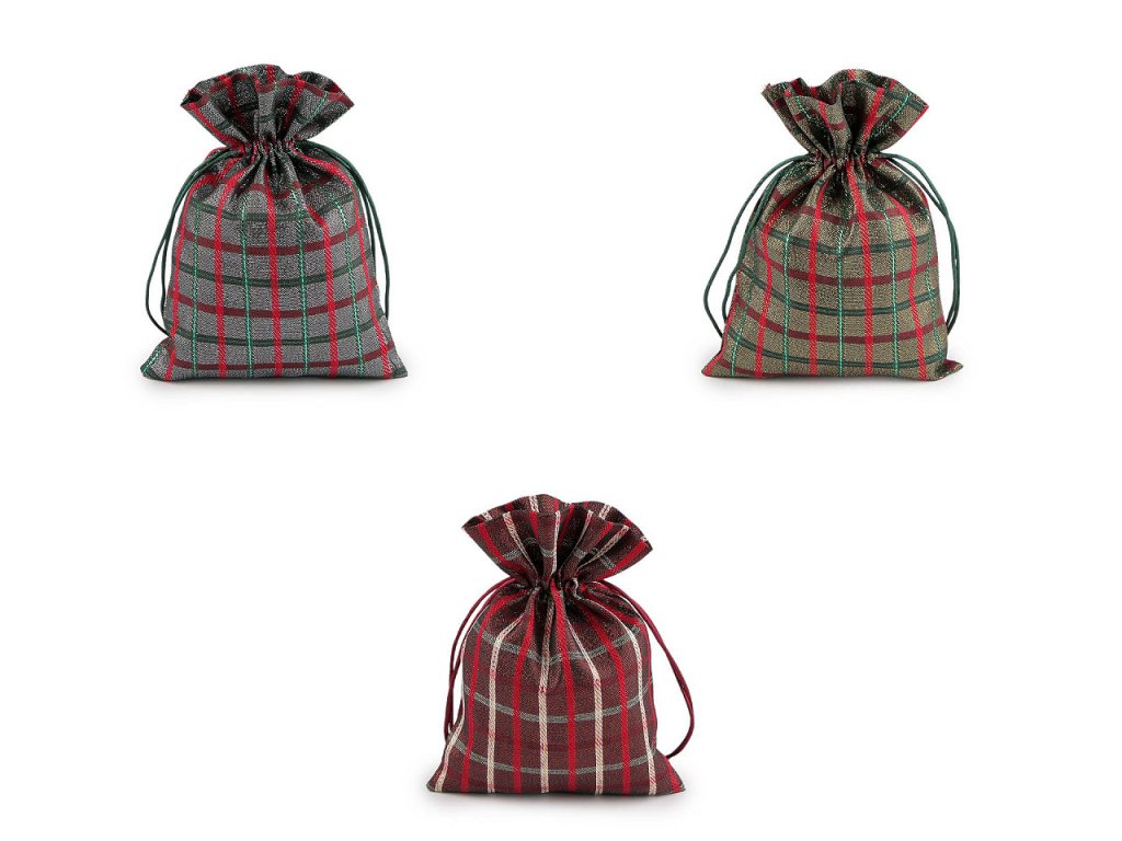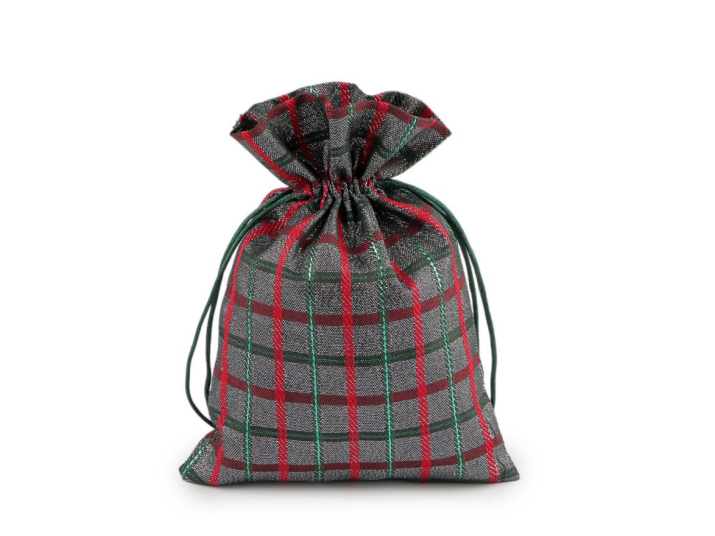 Vánoční dárkový pytlík káro s lurexem 13x18 cm