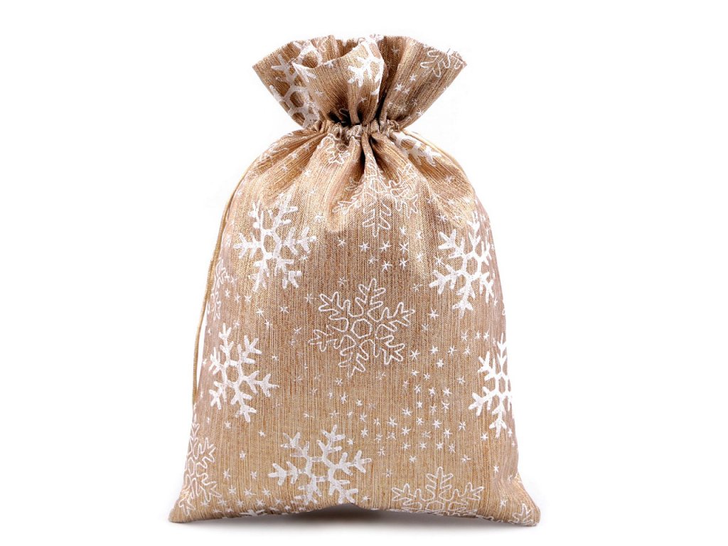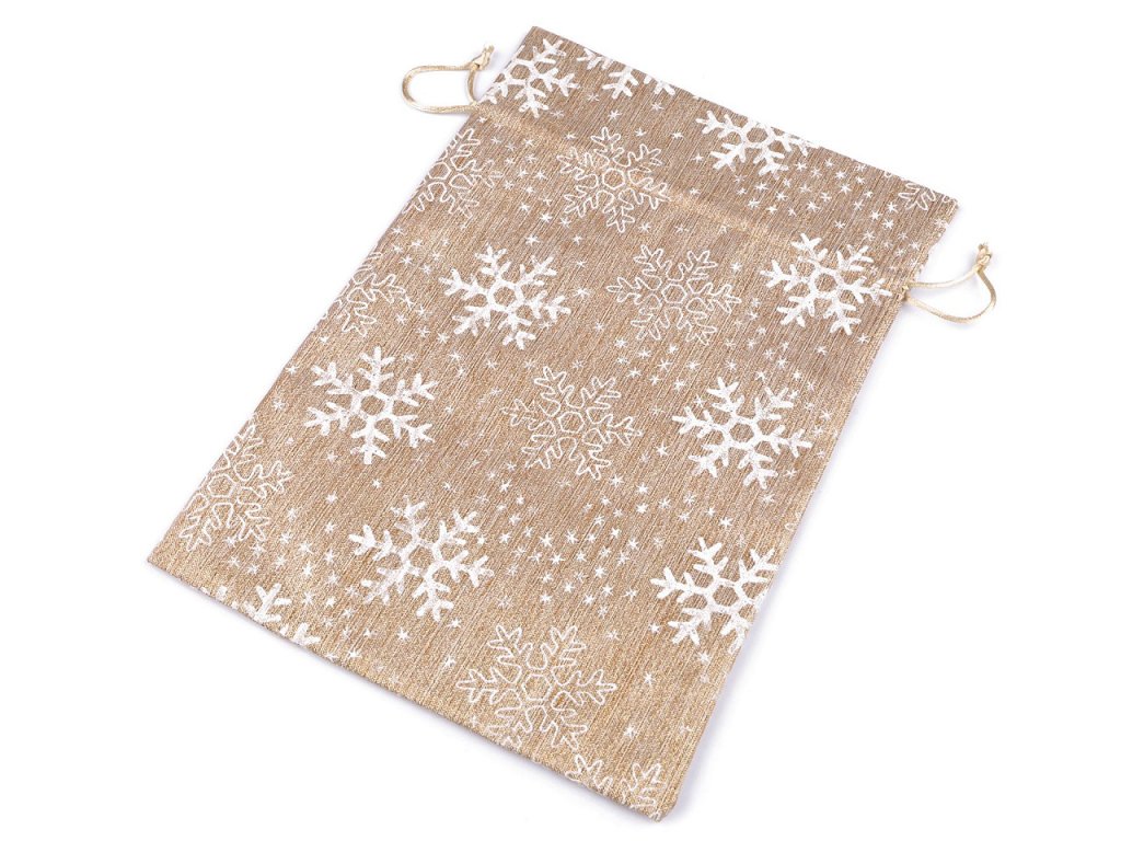 Vánoční dárkový pytlík vločky brokátový potisk 20x30 cm