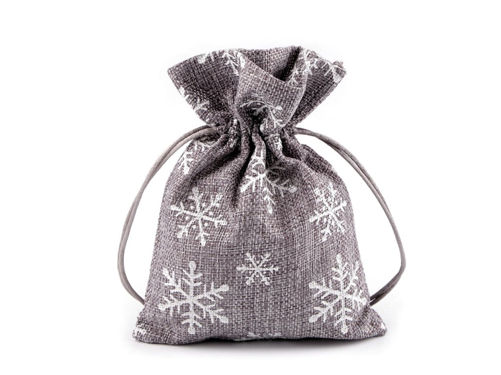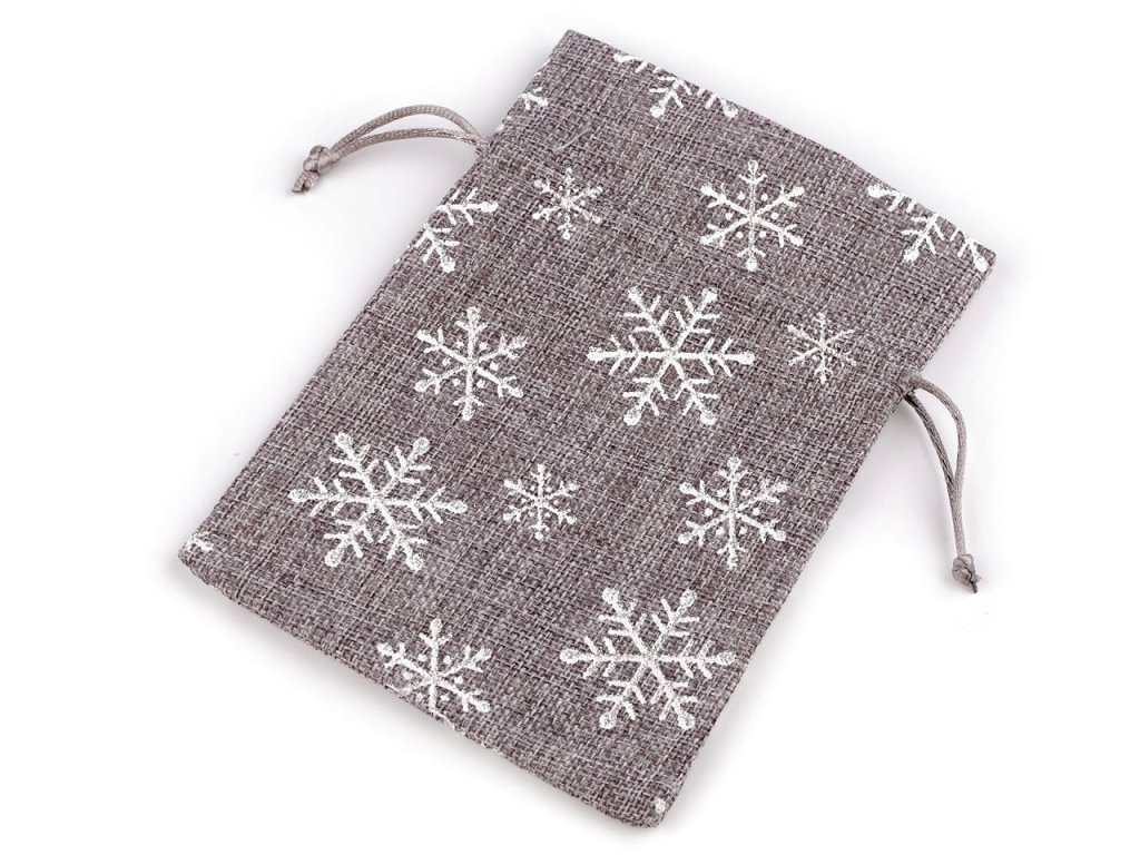 Vánoční dárkový pytlík vločky s glitry 13x18 cm imitace juty