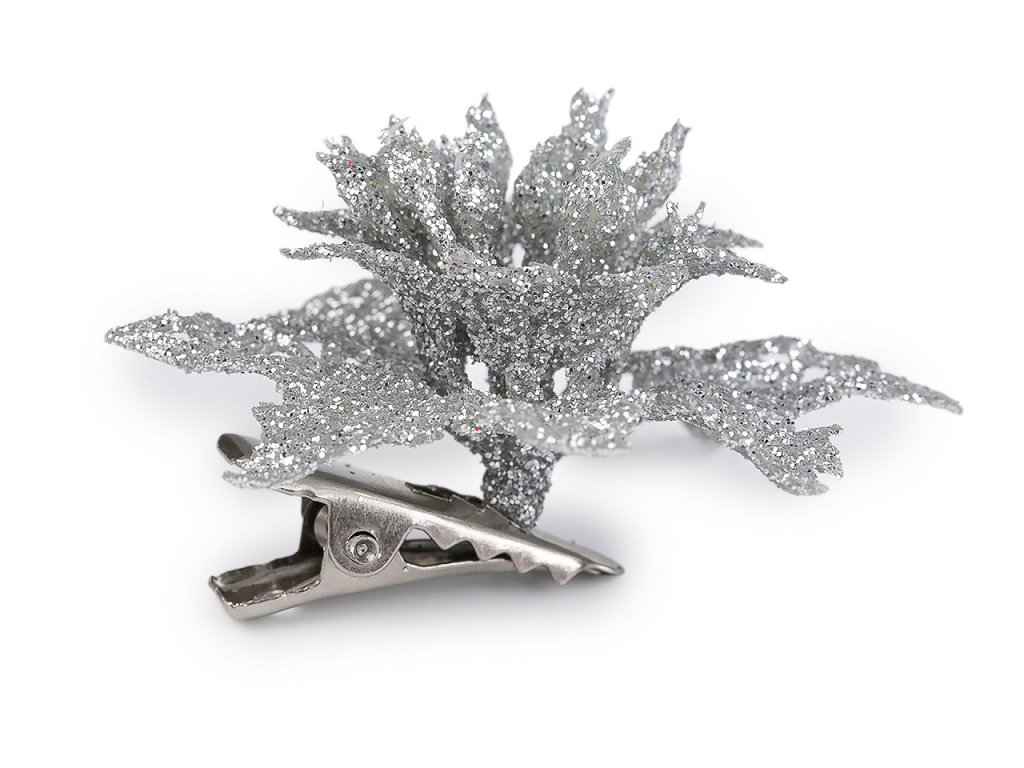 Vánoční hvězdy jsou poutavým detailem sváteční výzdoby. Jejich povrch se třpytivými glitry dodá vašemu domovu nádech elegance a luxusu. V dolní části je kovový klip, který umožňuje jednoduché připevnění na vánoční stromeček, věnce, dárky, svícny a různá aranžmá.- Průměr: cca 4,5 cm