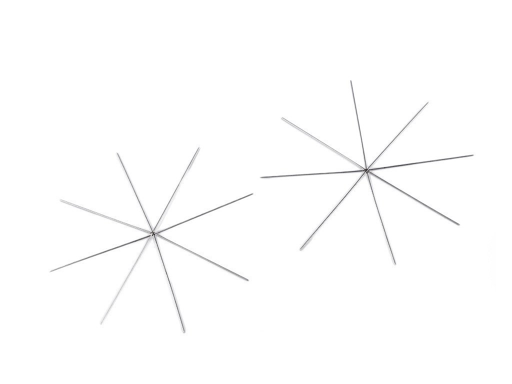 Drátěný základ pro výrobu dekoračních hvězdiček a vánočních vloček je velice kvalitní, z nerezové oceli. Na jednotlivé paprsky můžete navlékat korálky, perličky, velice efektně vypadají voskované perle. Skládá se ze 4 drátů, jež tvoří 8 paprsků. S tímto drátěným základem vytvoříte okouzlující vánoční vločky a hvězdy velmi snadno a hravě. Stačí navléknout korálky a na konci drátku zatočit očko pomocí kulatých bižuterních kleští. Hotovou hvězdu můžete zavěsit pomocí háčku nebo šňůrky na stromeček, do okna apod.- Průměr: 9 cm