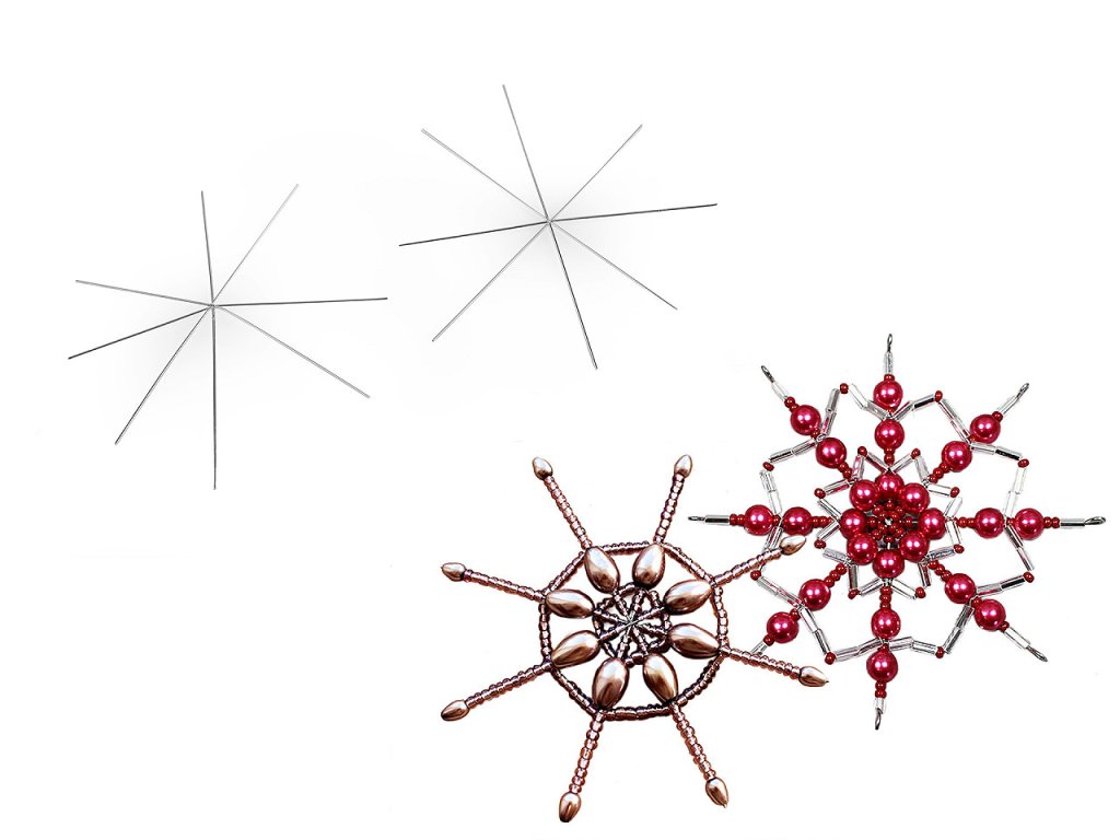 Drátěný základ pro výrobu dekoračních hvězdiček a vánočních vloček. Díky střední tvrdosti drátu se s hvězdou výborně pracuje. Na jednotlivé paprsky můžete navlékat korálky, perličky, velice efektně vypadají voskované perle. Skládá se ze 4 drátů, jež tvoří 8 paprsků. S tímto drátěným základem vytvoříte okouzlující vánoční vločky a hvězdy velmi snadno a hravě. Stačí navléknout korálky a na konci drátku zatočit očko pomocí kulatých bižuterních kleští. Hotovou hvězdu můžete zavěsit pomocí háčku nebo šňůrky na stromeček, do okna apod. Upozorňujeme zákazníky, že hvězdy mohou mít díky měkčímu materiálu nepravidelný tvar i různě dlouhé konce.- Průměr: 9 cm