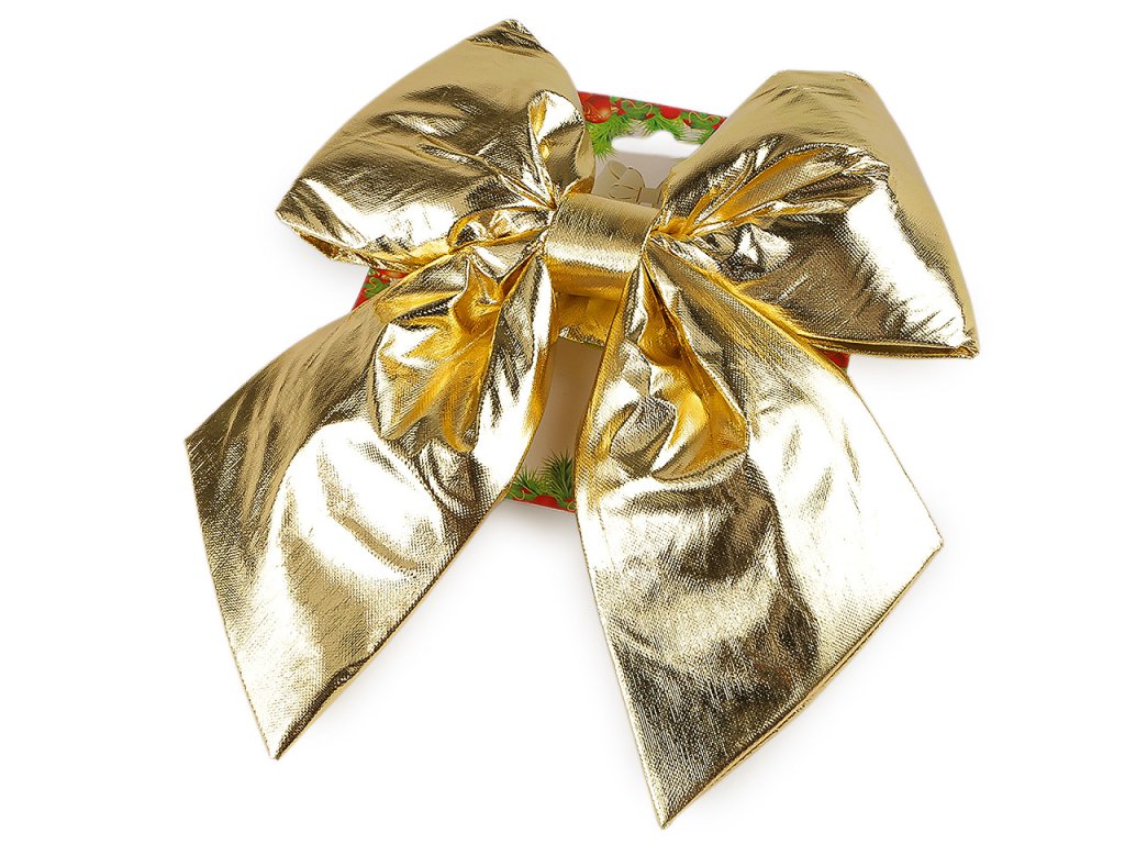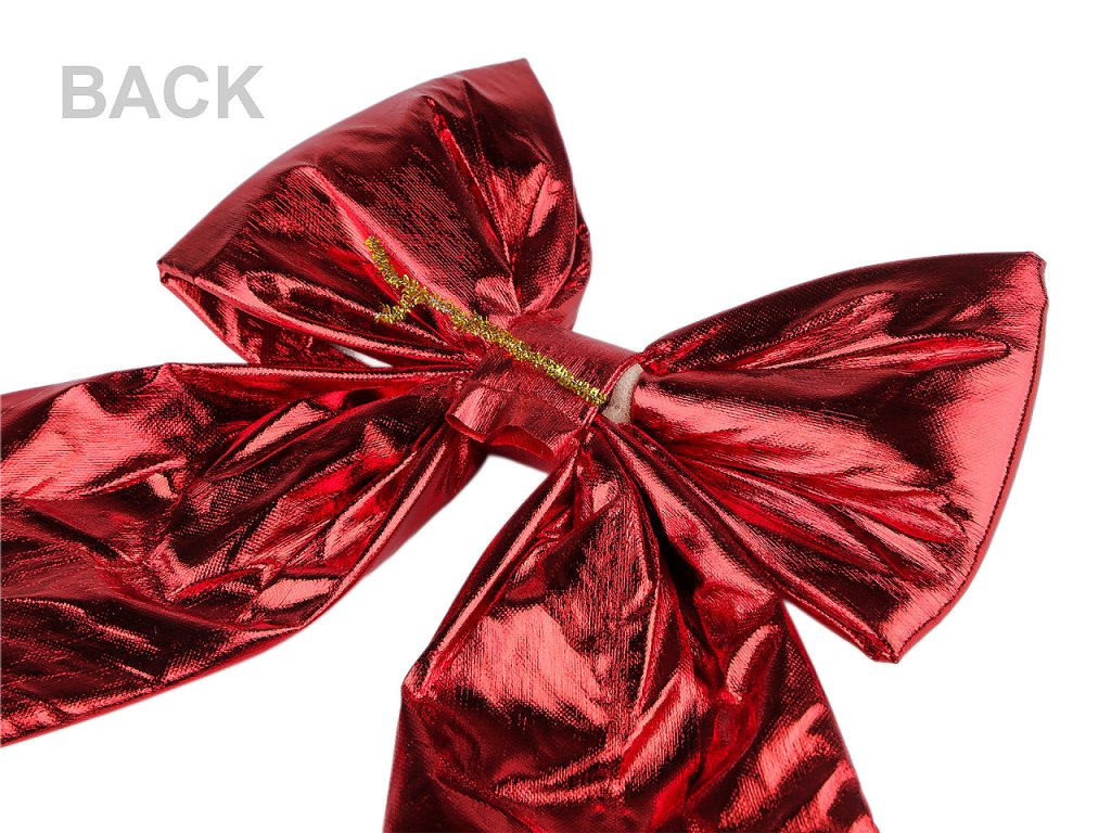 Vánoční mašle vyniká elegantním metalickým leskem a působivou velikostí. Je nadýchaná, bohatá, s pěnovou výztuhou uvnitř. Slavnostně s ní můžete ozdobit stromeček, dekorační věnce, dveře, židle, nadrozměrné dárky apod. Připevníte ji lurexovým drátkem, který je součástí mašle.- Rozměry: cca 21 x 24 cm