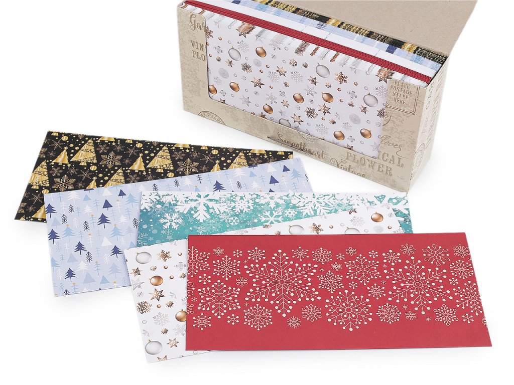 Vánoční papírová obálka je ideální volbou pro ty, kteří chtějí darovat peníze stylově a s vánoční náladou. Využijete ji nejen na peníze, ale také na dárkové poukazy a přáníčka. Obálka je typu DL, dovnitř se vejde papír A4 přeložený na třetiny. Díky kvalitnímu a trvanlivému proužku s lepidlem je dopisní obálku snadné zalepit. V originálním balení v krabičce najdete 5 motivů po 20 ks - celkem je tam tedy 100 ks obálek.- Rozměry: 11 x 22 cm