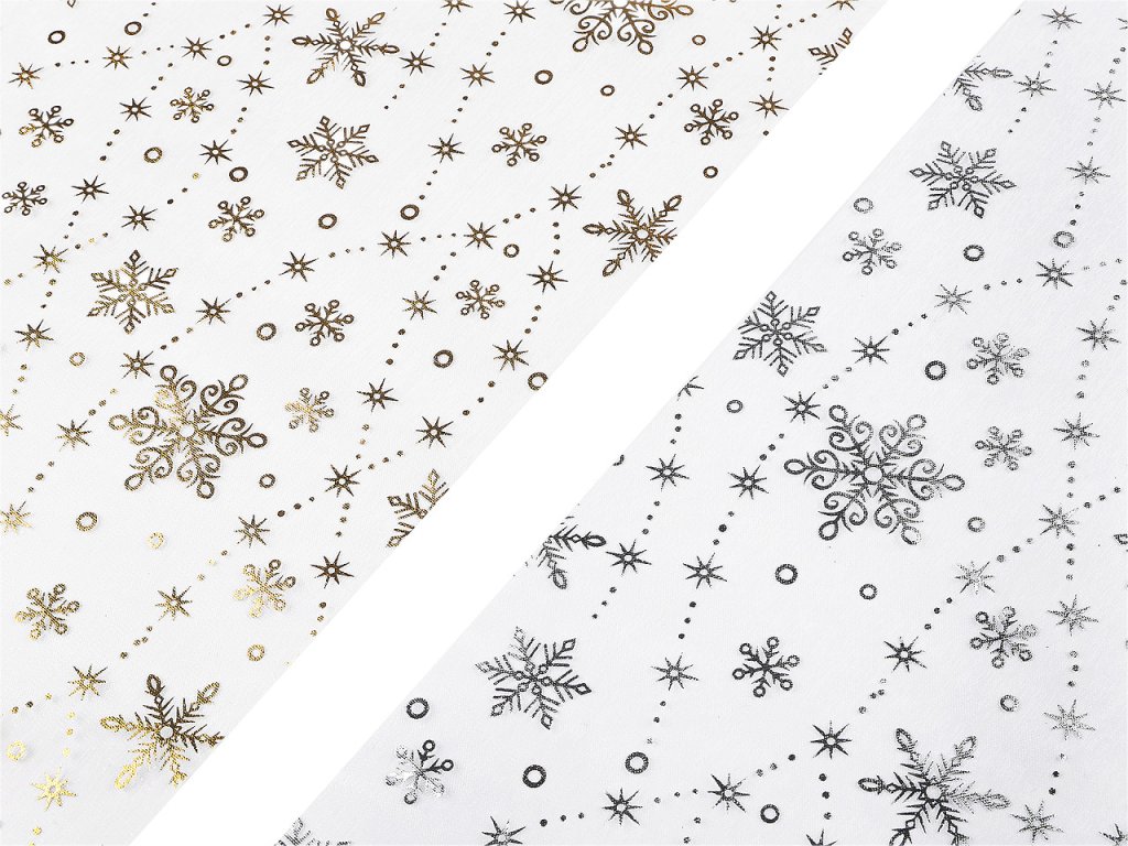 Vánoční organza s potiskem - vločka, šíře 36 cm