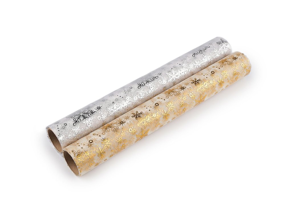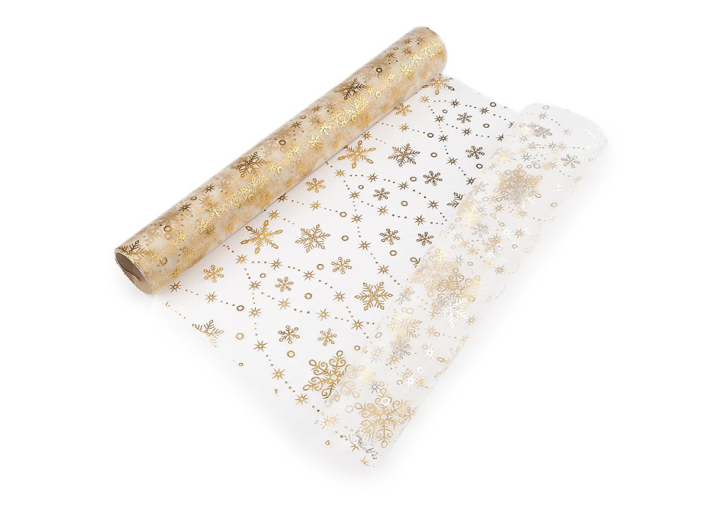 Dekorační organzu s potiskem vloček využijete na slavnostní zdobení vánoční tabule, ale je vhodná i k aranžování a tvorbě různých dekorací. Potisk vloček je metalický a jednostranný.- Šíře: 36 cm