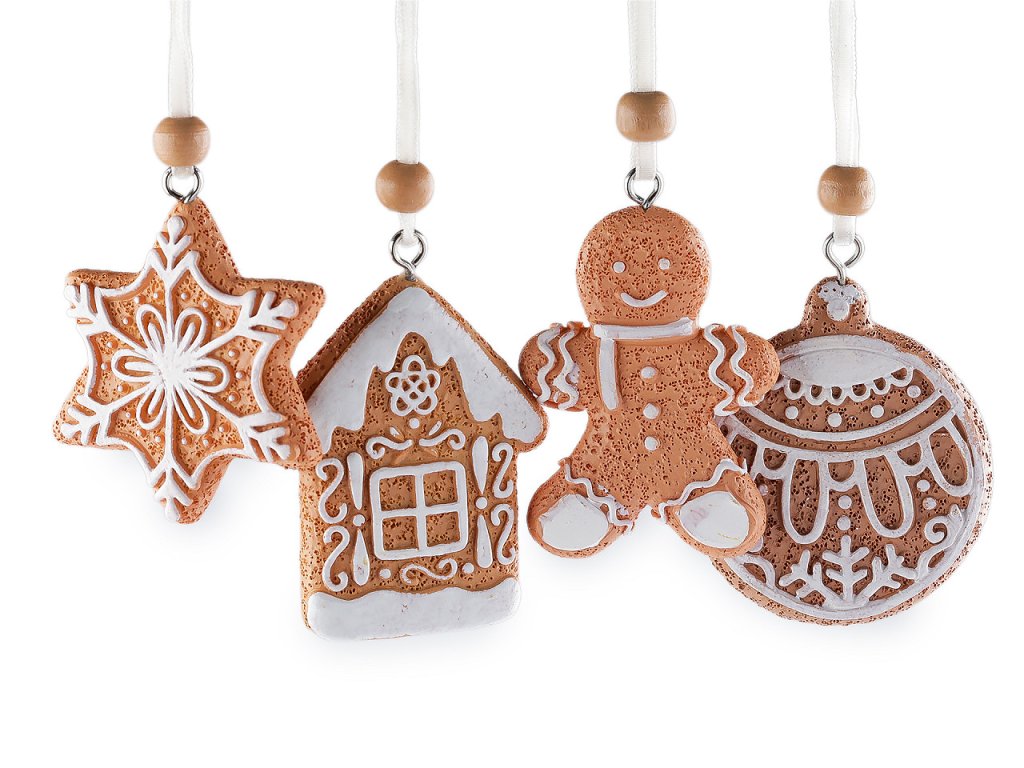 Dekorační perníčky vynikají detailním bílým dekorem. Díky poutku je můžete pověsit na vánoční stromeček, věnce nebo na zeď. Zdobení je jednostranné.- Rozměry: cca 5 x 6 cm