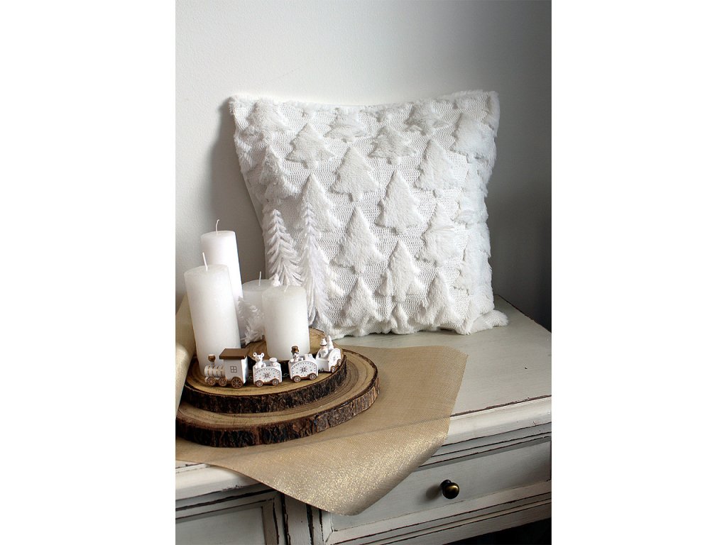 Povlak na polštář zdobí plyšové motivy vánočního stromečku. Do interiéru vnese tradiční vánoční kouzlo a přispěje k pohodové atmosféře. Může být skvělým doplňkem na pohovku, křeslo i postel. Na přední straně jsou plastické chlupaté stromečky, zadní strana je sametová. Zapíná se na skrytý zip. Toto je povlak na polštář, výplň můžete koupit zvlášť.- Rozměry: 45 x 45 cm