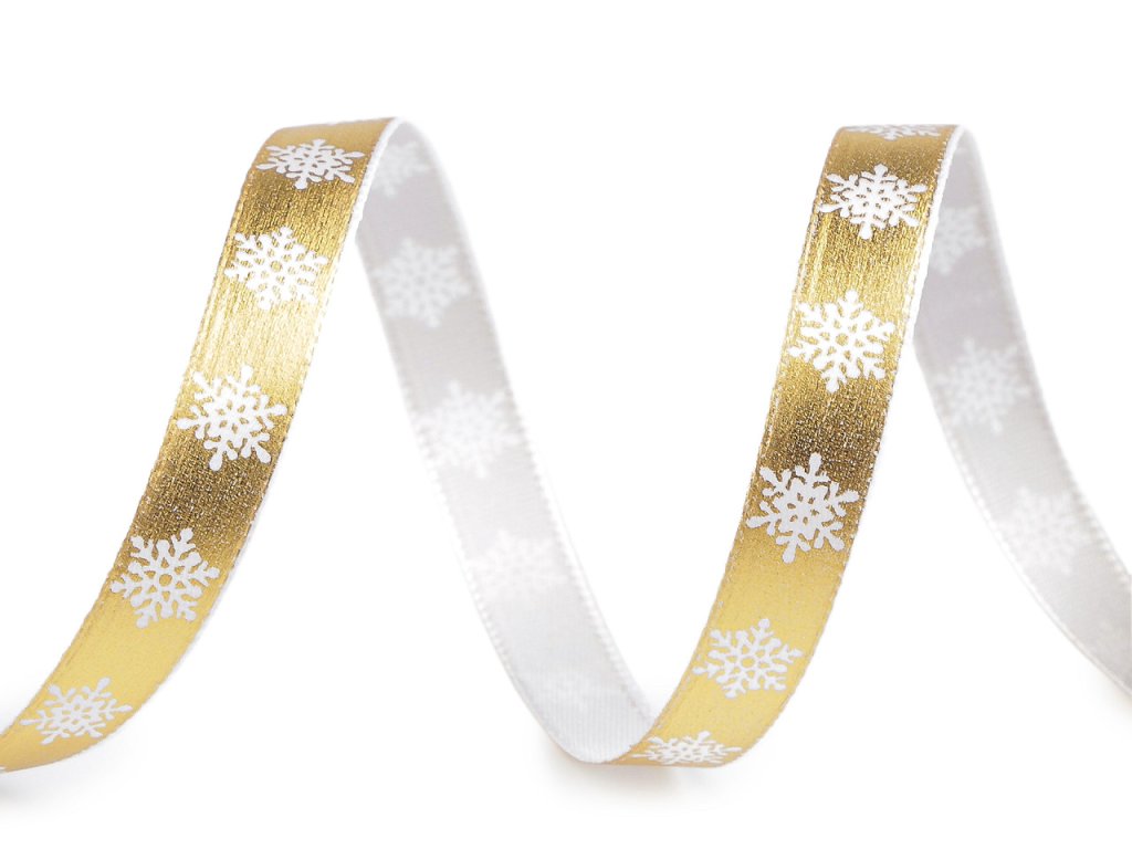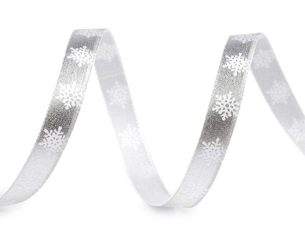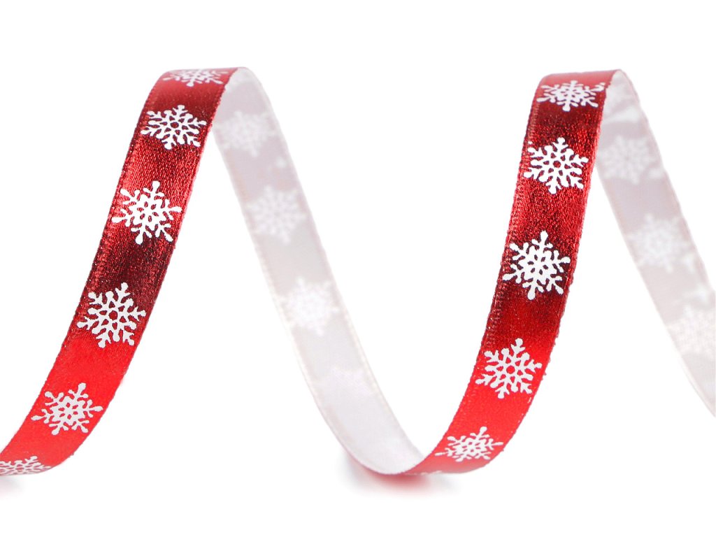 Dekorační stuha s metalickým potiskem s vločkami má poutavý lesk. Potisk je jednostranný. Použití: stuhou můžete ozdobit vánoční věnce a další dekorace. Je skvělá na balení dárků, vytváření ozdobných mašliček nebo jako stylový doplněk pro sváteční a slavnostní dekorace.- Šíře: 10 mm