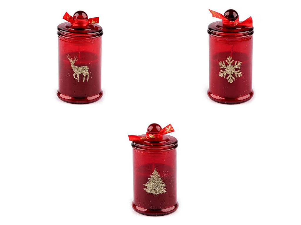 Vánoční vonná svíčka ve skleněné dóze vytvoří útulnou a příjemnou atmosféru v jakémkoli interiéru. Na dóze je glitrový obrázek. Vůně svíček je jemná, lehce nasládlá. Hmotnost vosku je 80 g.- Průměr: 6 cm