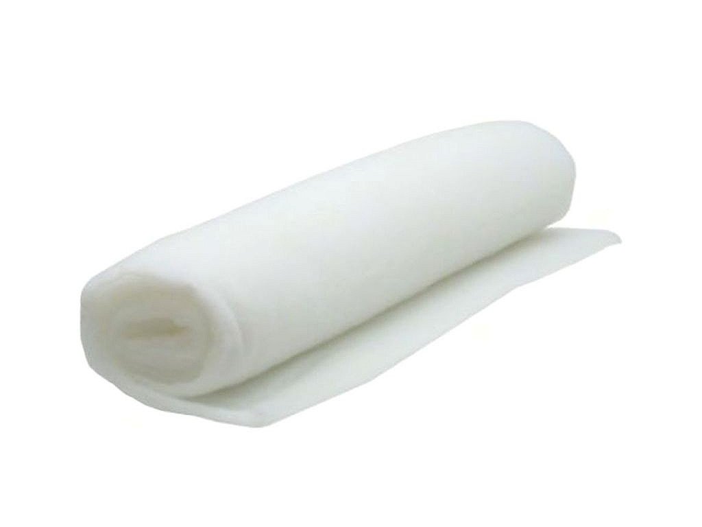 TEVYRO 100 gr. - objemové rouno chemicky pojené, šíře 90 cm, baleno (10) m. Rouno TEVYRO je tvořeno z 75-95% PES vláken TESIL a 5-25% akrylátového pojiva. Kombinací s dutými vlákny a nižším obsahem pojiva jsou zvýšeny jeho tepelně izolační vlastnosti a dosahuje se tím vysoká užitná hodnota. Pod pojmem rozměřená znamená, že si lze Vatelín koupit i v menším balení např. 10 m. U nerozměřené se jedná o originální balení např. 80 m. Výška Vatelínu v nestlačeném stavu u 100g je cca 8 mm. Označení v názvu VERTEX a VBV se jedná o Vatelín od dvou různých dodavatelů. Kvalitou zpracování je Vatelín VBV více hutnější, kdežto VERTEX je více slisovanější. Možnosti použití: oděvní průmysl, čalounický průmysl, výroba nealergických přikrývek a polštářů. Maximální balení v celku je 10 m- Gramáž: 100 g/m²