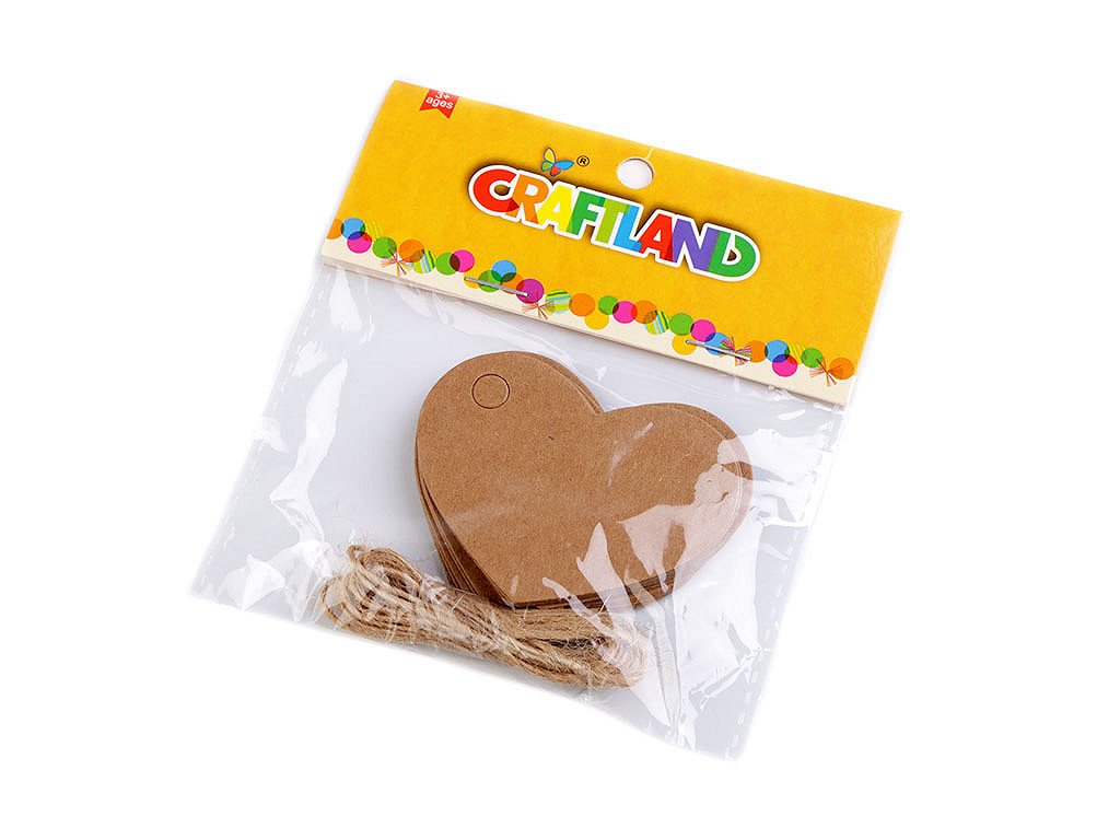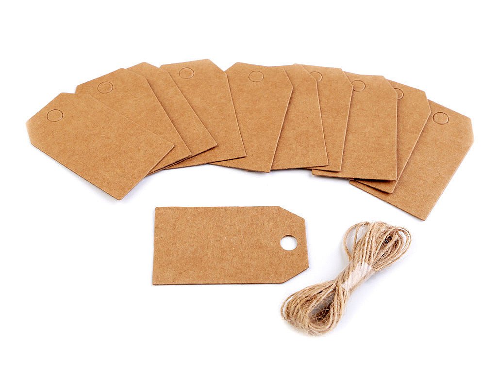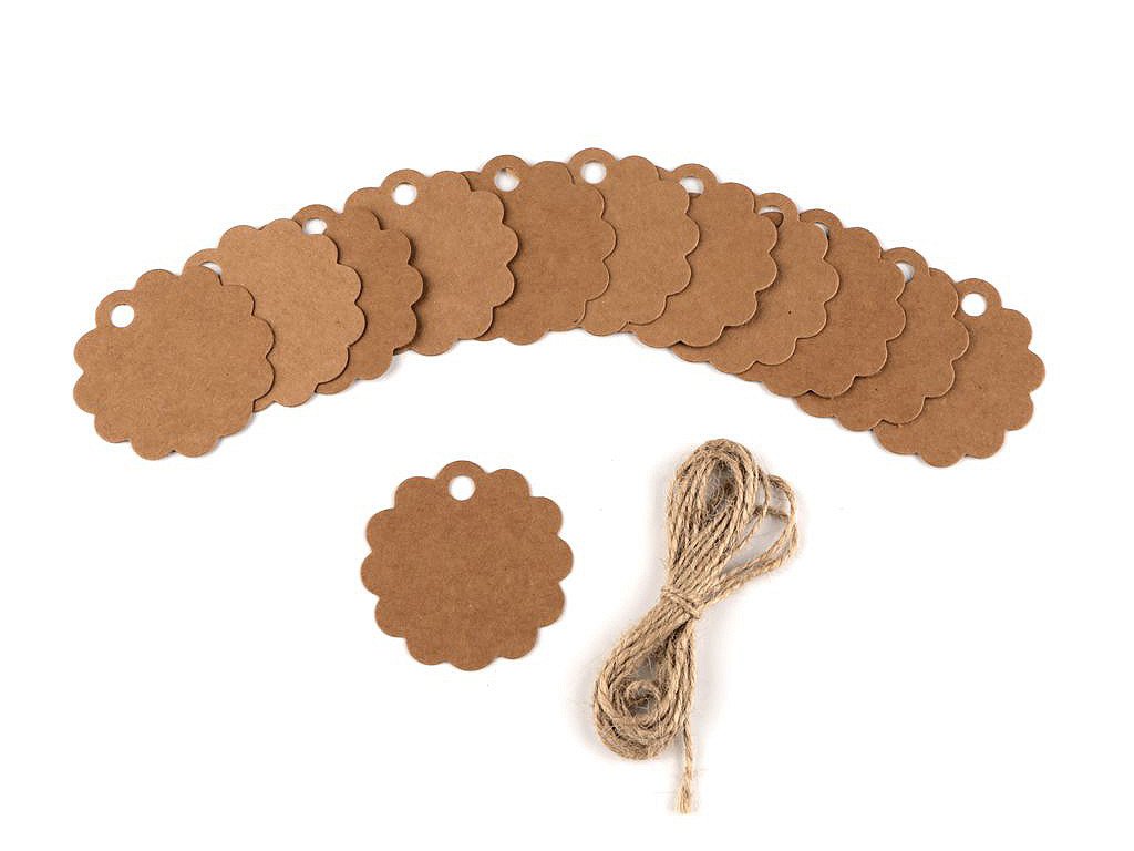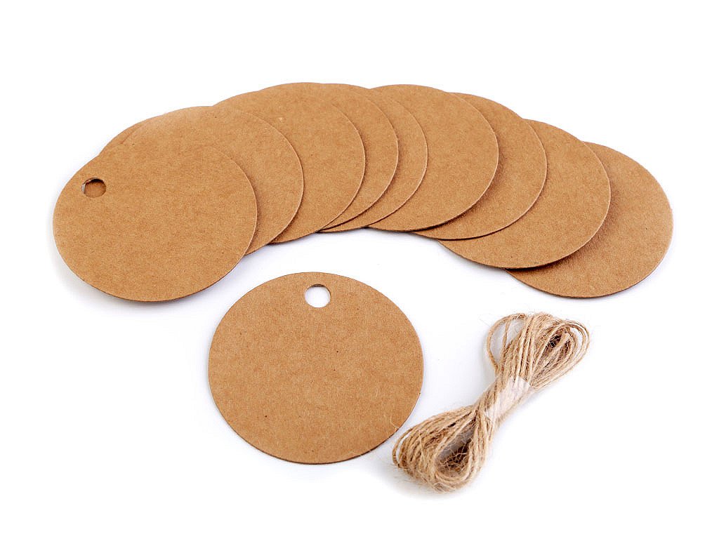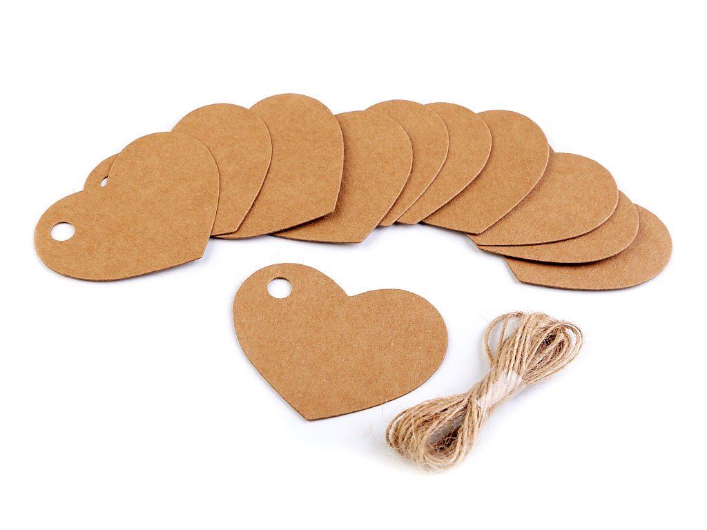 Papírovou visačku můžete přivázat jako jmenovku k balíčku, pytlíčku, přání apod. Je vyrobená z pevného papíru. V horní části má vyražený kruhový otvor. Součástí balení je šňůrka na přivázání. Visačku můžete využít na jakékoliv zboží, je pěkná i jako dekorace.V jednom sáčku je 10 ks visaček. Rozměry č. 1 - srdce - 4,5 x 6 cm. Průměr: č. 2 - kolečko - 5,5 cm. Rozměry č. 3 - visačka - 3,5 x 6 cm.- Rozměry: cca 3,5 - 6 cm