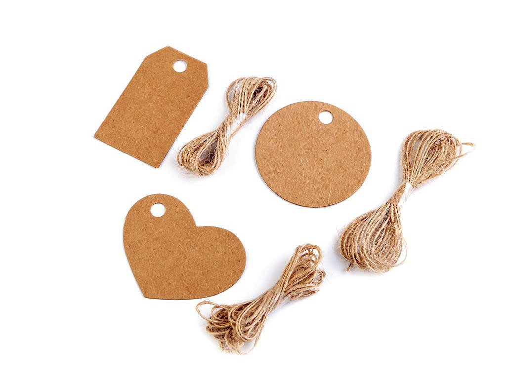 Visačka / jmenovka s jutovým provázkem srdce, kolečko
