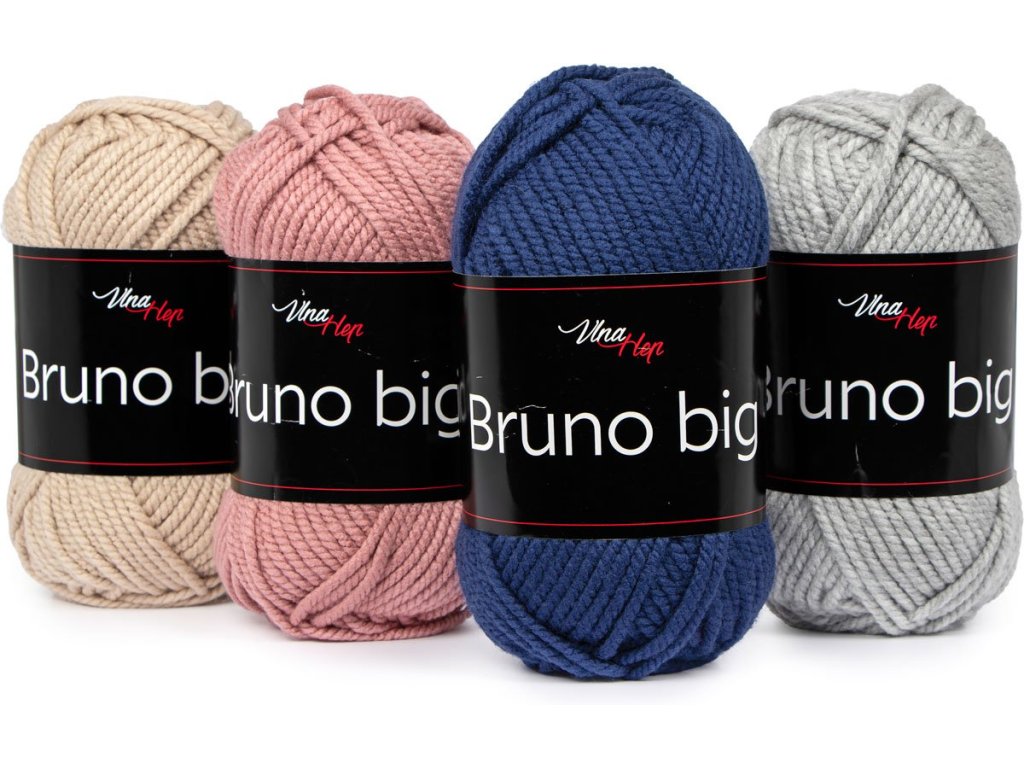 Objemná zimní příze ze 100% akrylu. Díky své síle se výrobky snadno vytvářejí. Bruno big je ideální na silnější vzory a výrobky jako jsou tunely, čepice a objemné šály.