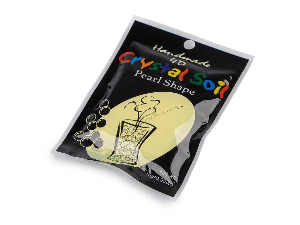 Vodní perly mohou sloužit jako dekorace, ale můžete je také použít místo vody ve váze s řezanými květinami. Nasáknou vodu a zadrží ji po dobu až 2 měsíců. Hodí se nejen pro čerstvé květiny, ale i pro hydrokulturu a odnože k přesazení. Tip zákazníka: zalévejte i destilovanou, měkkou dešťovou nebo převařenou vodou. Použití: Namočte perly na 8 - 10 hodin do vody, kde nabobtnají z průměru cca 3 mm do průměru cca 14 mm. 1 g krystalků je cca na 100 ml (1 deci) vody. Varování: uchovávejte mimo dosah dětí. V případě spolknutí vyhledejte pomoc lékaře. V jednom sáčku je cca 370 kuliček.- Hmotnost: 10 g