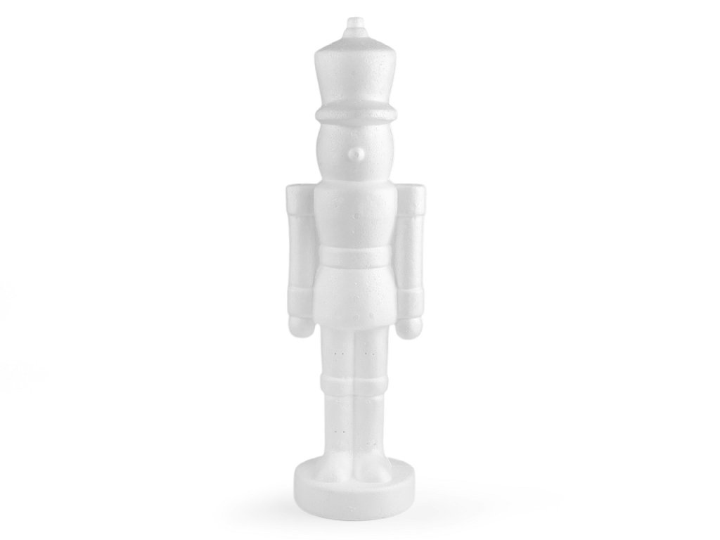 Velký polystyrenový louskáček je zajímavou vánoční dekorací. Můžete ho naaranžovat do oken, na krbové římsy, do výloh apod. Má kvalitní 3D zpracování, uvnitř má kovovou výztuž. Je krásný sám o sobě v bílé barvě, ale můžete jej dozdobit malbou nebo technikou decoupage či patchwork. Na polotovar můžete nalepit či připíchnout látku, korálky, organzu atd.- Šířka: 21 cm