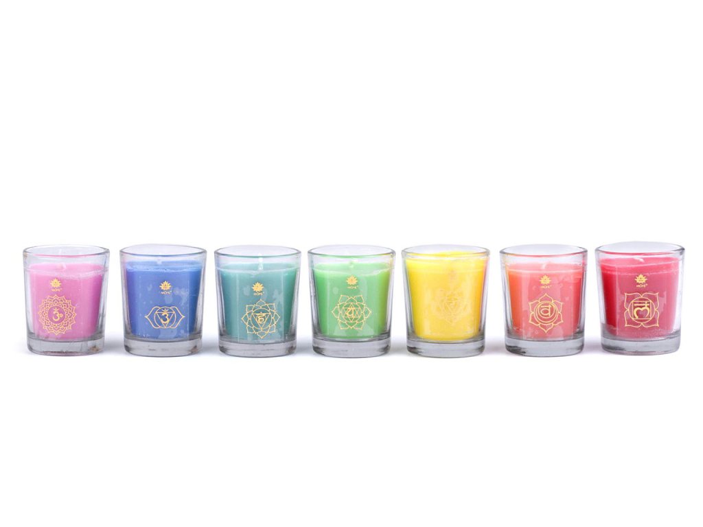 Vonná čakrová svíčka ve skle, sada 7 ks