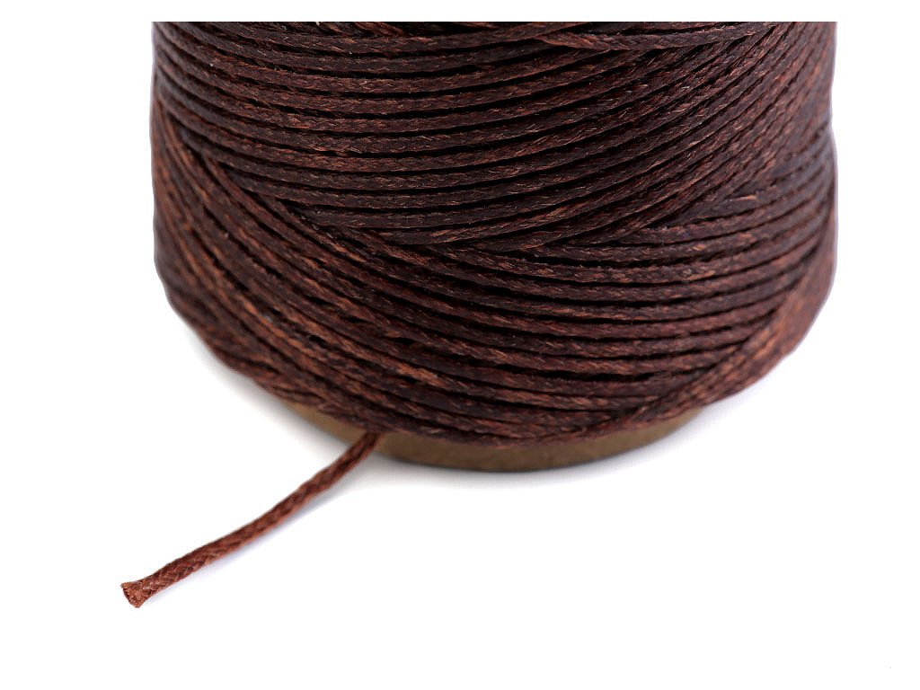 Voskovaná polyesterová nit je pevná a odolná, díky voskované úpravě se jí netřepí konce. Je poměrně silná, využijete ji v galanterii na přišívání knoflíků na kabelky, bundy, tašky apod. Využívá se na dekorativní švy např. u obalů na knihy, obuvi, v sedlářství, čalounictví apod.- Průměr: 1 mm