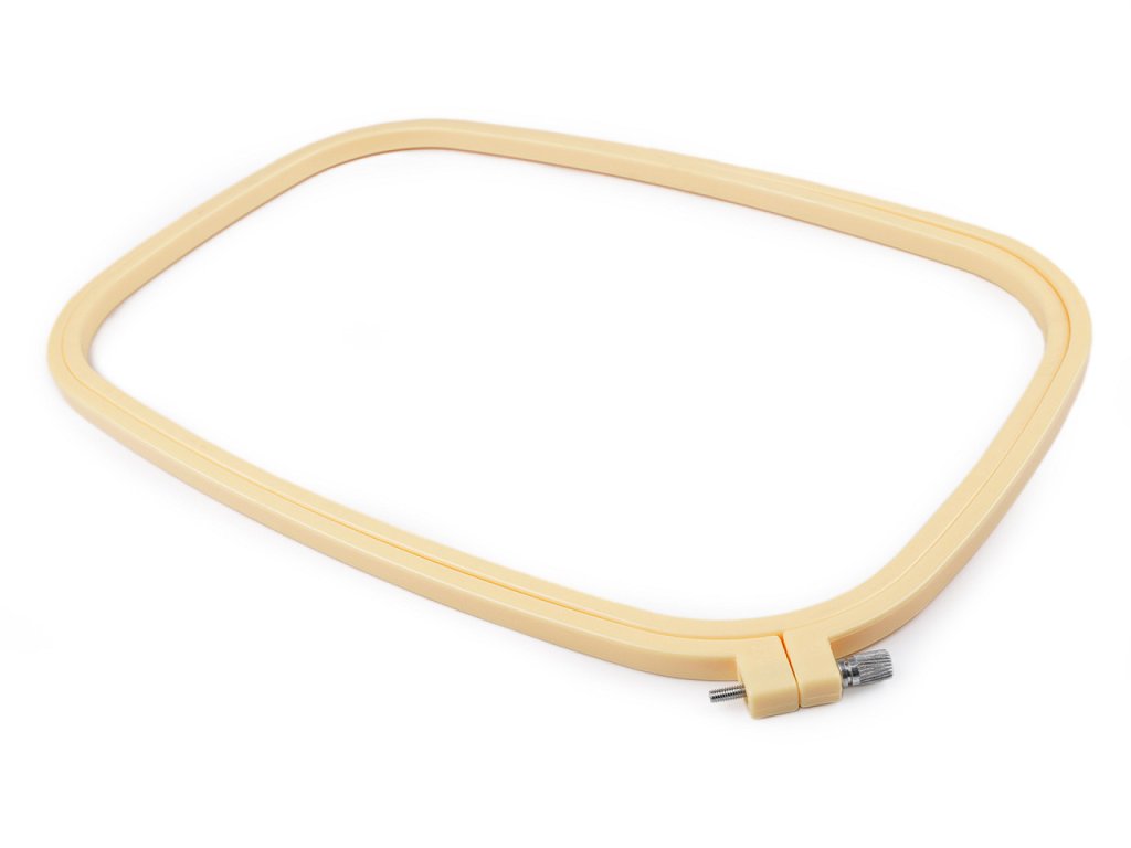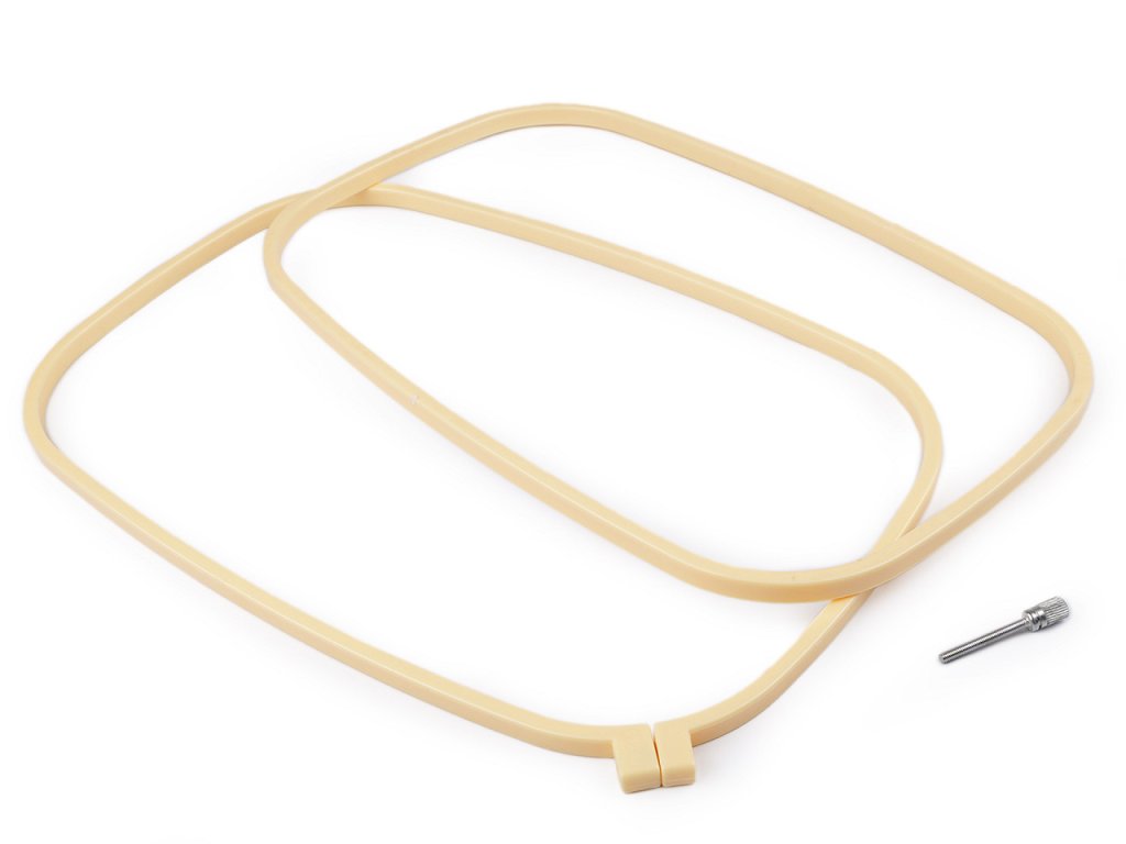 Plastový vyšívací rámeček s kovovým stahovacím šroubkem. S jeho pomocí se upevní a vypne vyšívací tkanina do rámečku.- Vnitřní rozměry: 23 x 36,5 cm