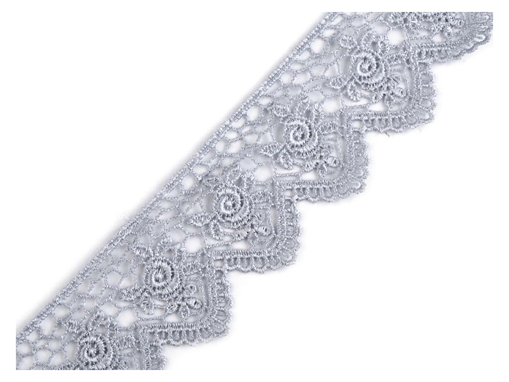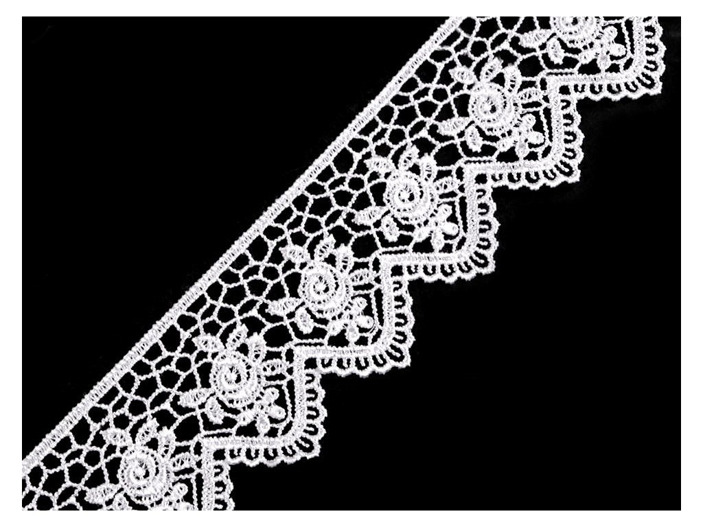 Vzdušnou krajku s romantickým designem zakončují obloučky. Je pevná, není pružná. Použití: Krajku využijete k dekoraci šatů, sukní, halenek, ubrusů nebo polštářů. Zajímavě vynikne v kombinaci s přírodními materiály, například s jutou. Šíře krajky se po konečné úpravě může lišit o ±6%.- Šíře: 45 mm