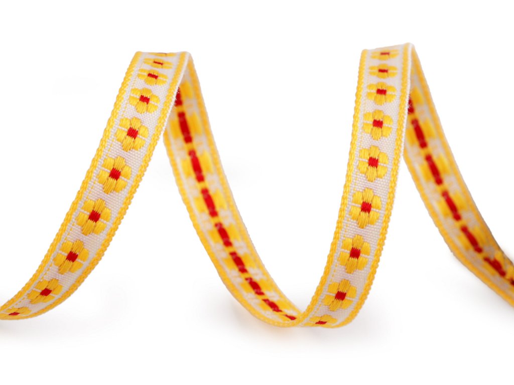 Květovaná vzorovka vynikne na oděvech i doplňcích. Můžete ji našít jako ozdobu na halenky, šaty, sukně, dekorační polštáře, prostírání, zástěry, ubrusy apod.- Šíře: 10 mm