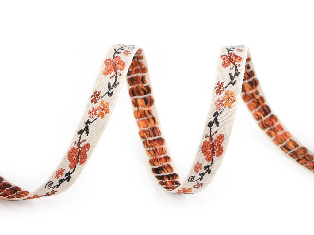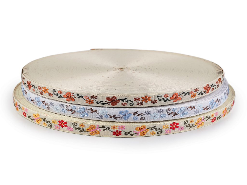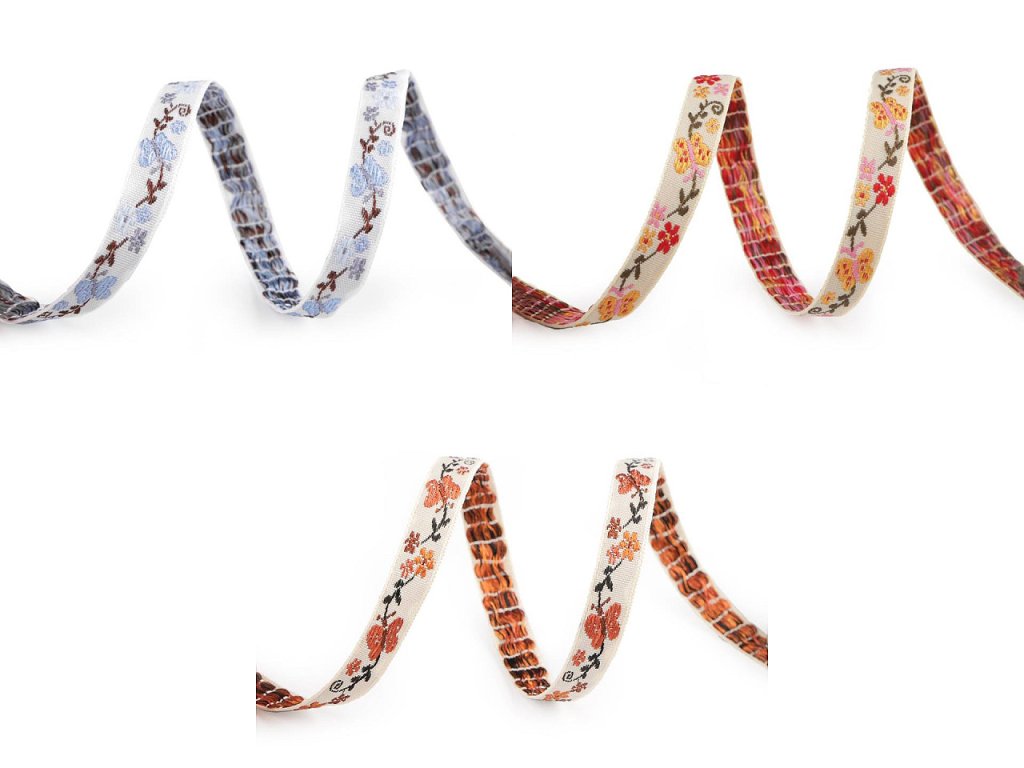 Vzorovka s motýly a květy ozdobí halenky, sukně, šaty, kalhoty i mikiny. Využijete ji i na ozdobení čelenek a pásků. Vynikne také na polštářích, ubrusech a prostírání.- Šíře: 10 mm
