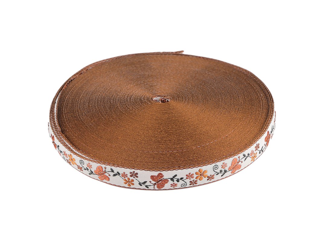 Vzorovka je zajímavým doplňkem, který ozdobí halenky, sukně, šaty, kalhoty i mikiny. Vynikne také na polštářích, ubrusech, taškách, kloboucích a prostírání. Zdobí ji tkaný motiv s motýly a květy.- Šíře: 20 mm