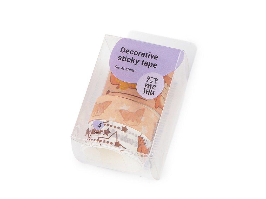 Sada barevných washi lepicích pásek, které můžete lepit na hladké povrchy jako je dřevo, plast, papír, sklo, atd. je ozdobená dětskými motivy. Je ideální pro dekorování diářů, balení dárků, scrapbooking nebo jiné kreativní projekty. Výhodou pásky je, že je z papíru a můžete ji lehce utrhnout. Díky samolepicí vrstvě je velmi snadno použitelná a nezanechává stopy po odstranění. Krabička obsahuje 3 ks pásek, každý kotouček obsahuje cca 1,8 m pásky. Dvě pásky jsou široké 15 mm, jedna je široká 30 mm. Mix všech pásek je zabalený v transparentní krabičce, která má rozměry 4,5 x 4,5 x 8,5 cm.- Šířka: 15; 30 mm