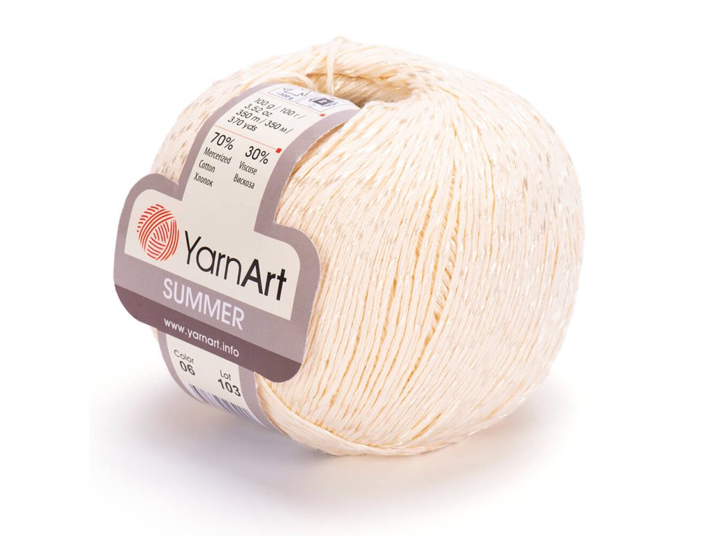 YarnArt pletací příze Summer. Složení: 70% Bavlna - 30% Viskóza. Letní příze vhodná na čepičky, halenky, svetříky, topy, zkrátka na všechny letní úplety.Tato příze je atestována TZÚ pro děti do 3 let.