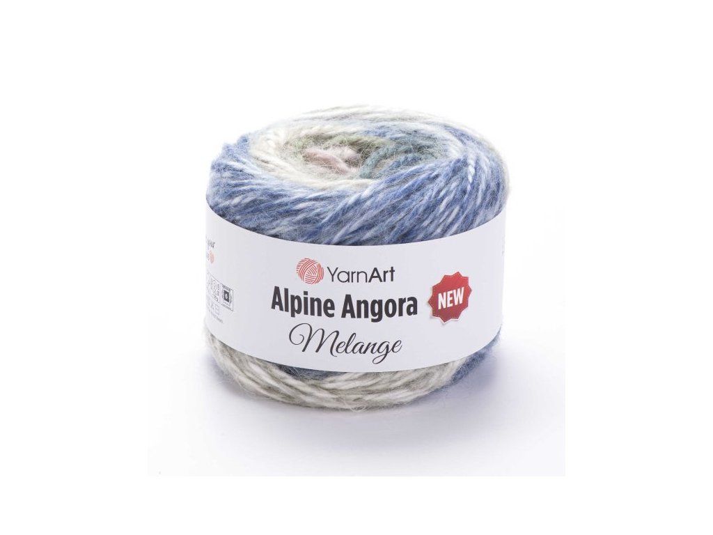 YarnArt Alpine Angora Melange objemná směsová příze - směs akrylu a vlny s mykáním povrchu v melírovaném provedení. (Mykání je rozvolňování textilního materiálu až na jednotlivé vlákno za pomoci ostrých hrotů. Vlákna se urovnají stejnoměrně vedle sebe ve formě pavučinky)
