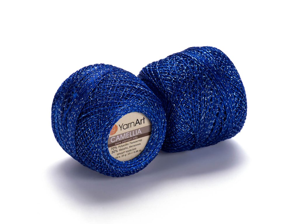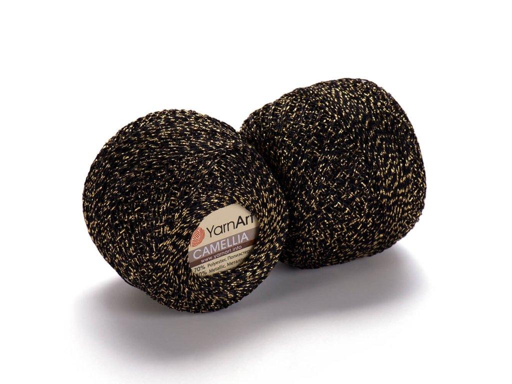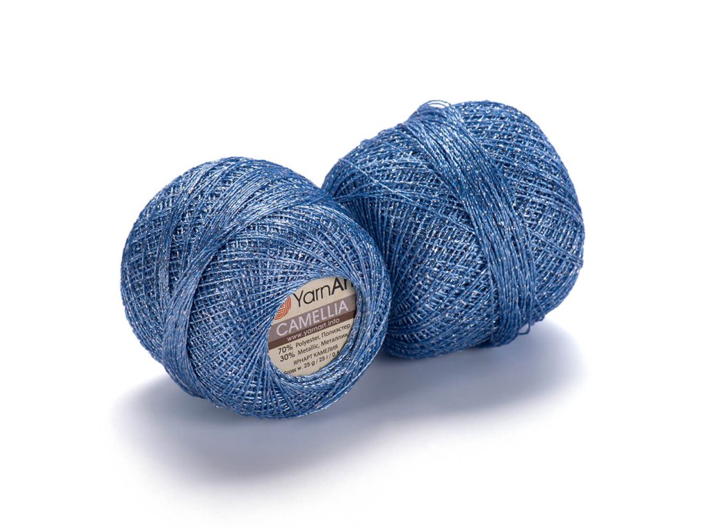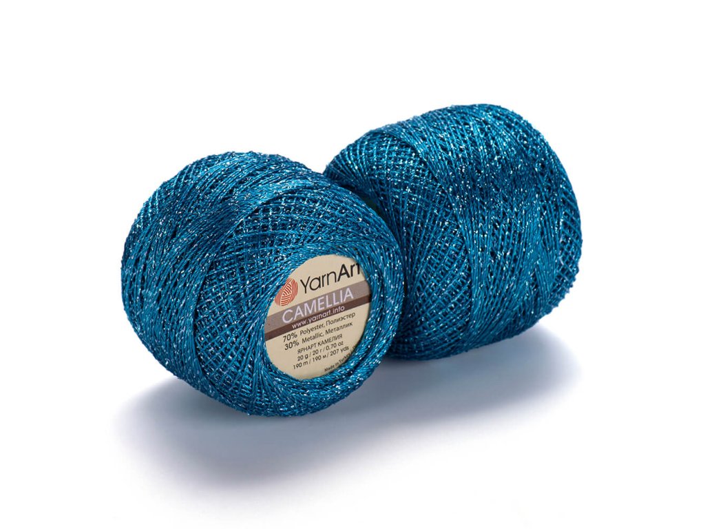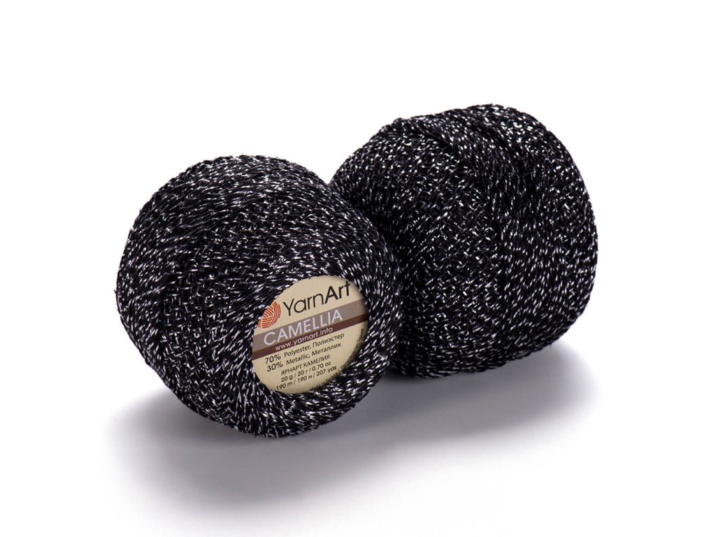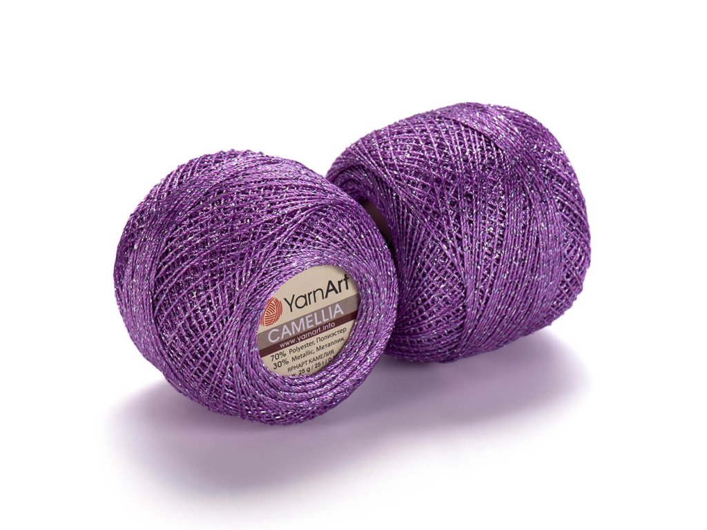 YarnArt pletací a háčkovací příze Camellia s nádherným metalickým odleskem, jedinečná k výrobě třpytivých dekorací a kouzelných vánočních ozdob a baněk. Tato tenká lurexová pletací a háčkovací příze je také vhodná jako efektní příplet k dalším YarnArt přízím, každému kousku dodá lesk a originalitu.