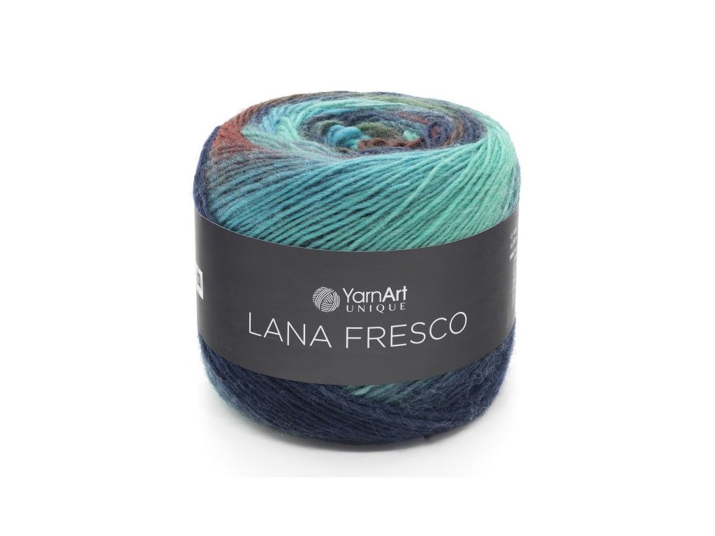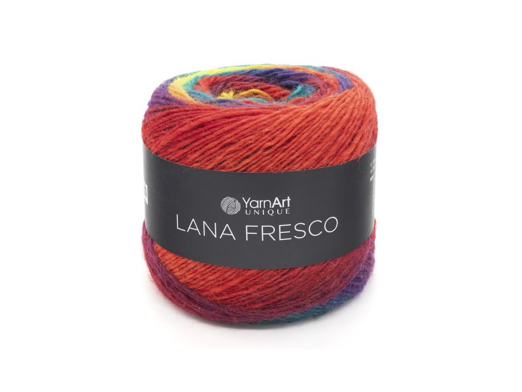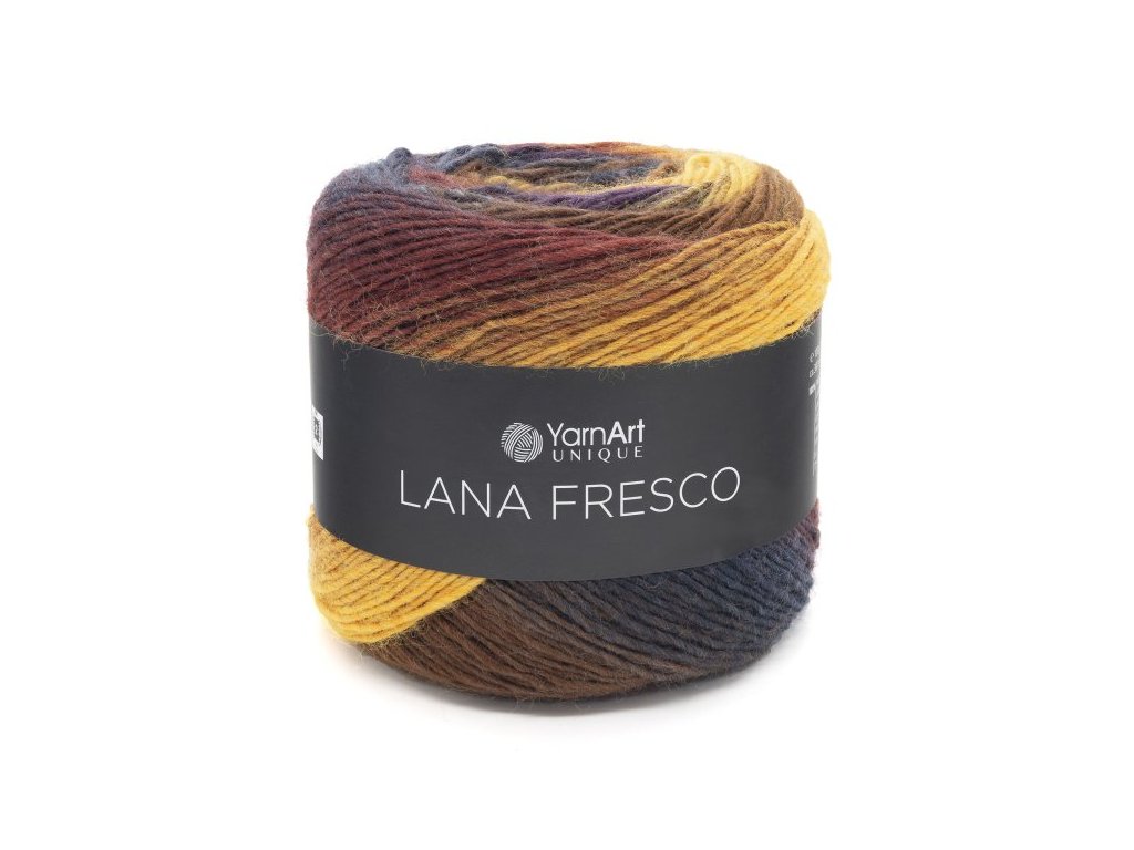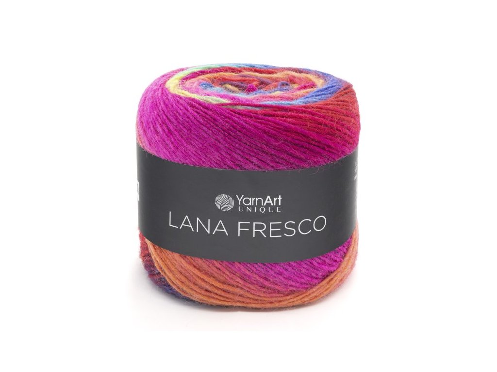 YarnArt Lana Fresco je příze s mimořádnou hrou barev, která promění i jednoduché outfity v módní prohlášení. Je vyrobena ze 100% vlny, tudíž je hřejivá, měkká a příjemná na dotek. Hodí se zejména na tvoření zimních svetrů, šál a kardiganů.