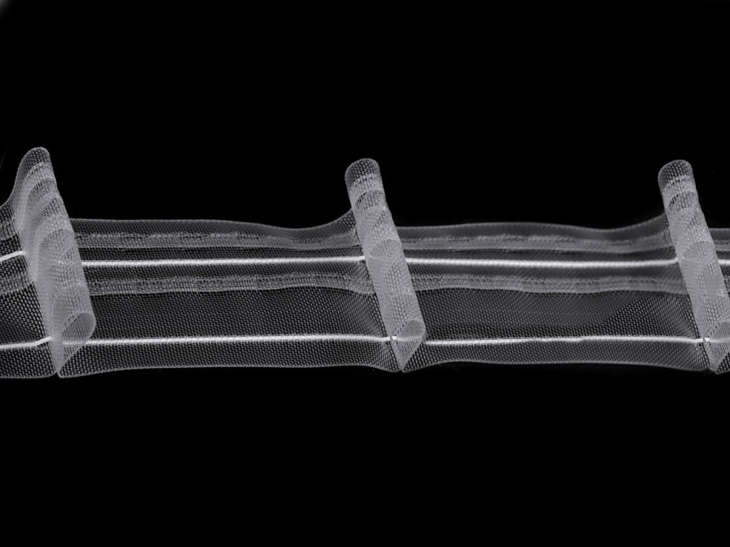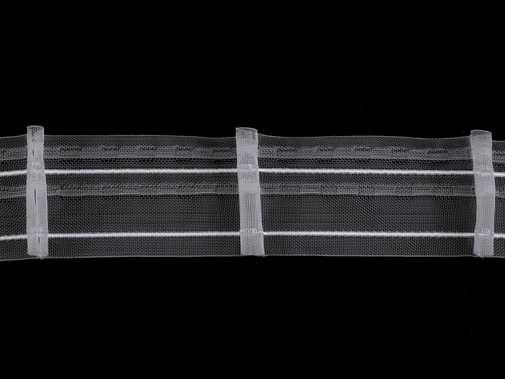 Záclonovka má na zadní straně 2 šňůrky, za které stačí zatáhnout, aby vznikly pravidelné sklady. Postará se o rovnoměrné nařasení záclon a závěsů. Doporučené řasení je 1:1,5 - na 1 m záclony po nařasení je potřeba použít 1,5 m záclony před nařasením a stejný poměr stuhy.- Šíře: 50 mm
