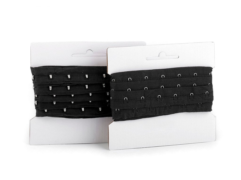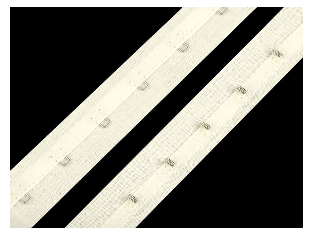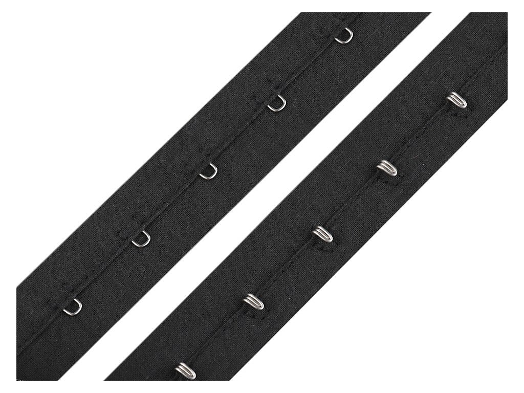 Korzetové zapínání je užitečný pomocník v textilní galanterii. Na kvalitním popruhu jsou pevně připevněny háčky. Balení obsahuje dvě cívky, které obsahují háčky a protikusy (vyrobeny z oceli odolávající praní). Vzdálenost mezi háčky je 2,5 cm.- Šíře: 25 mm