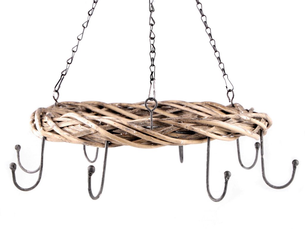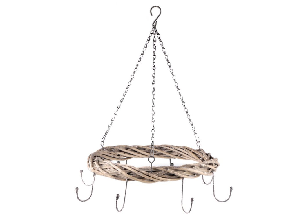 Závěsný proutěný věnec v rustikálním stylu využijete k celoročnímu aranžování. Vyniknou na něm vánoční, velikonoční, podzimní i letní dekorace. Po stranách má 8 háčků, na které můžete pověsit sušené květy, baňky, jmelí, větvičky a různé dekorace. Délka od závěsného háčku k věnci je cca 38 cm. Délka háčků, které jsou po obvodu věnce, je cca 7,5 cm.- Vnitřní průměr: cca 36 cm
