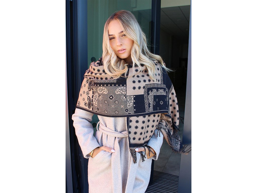 Oboustranná vzorovaná šála vás perfektně zahřeje v sychravých dnech. Je vyrobená z příjemně měkkého a jemného materiálu. Na koncích je zakončená dlouhými třásněmi. Upozorňujeme zákazníky, že složení na štítcích se může lišit, materiál je polyester a viskóza.- Šířka: 65 cm