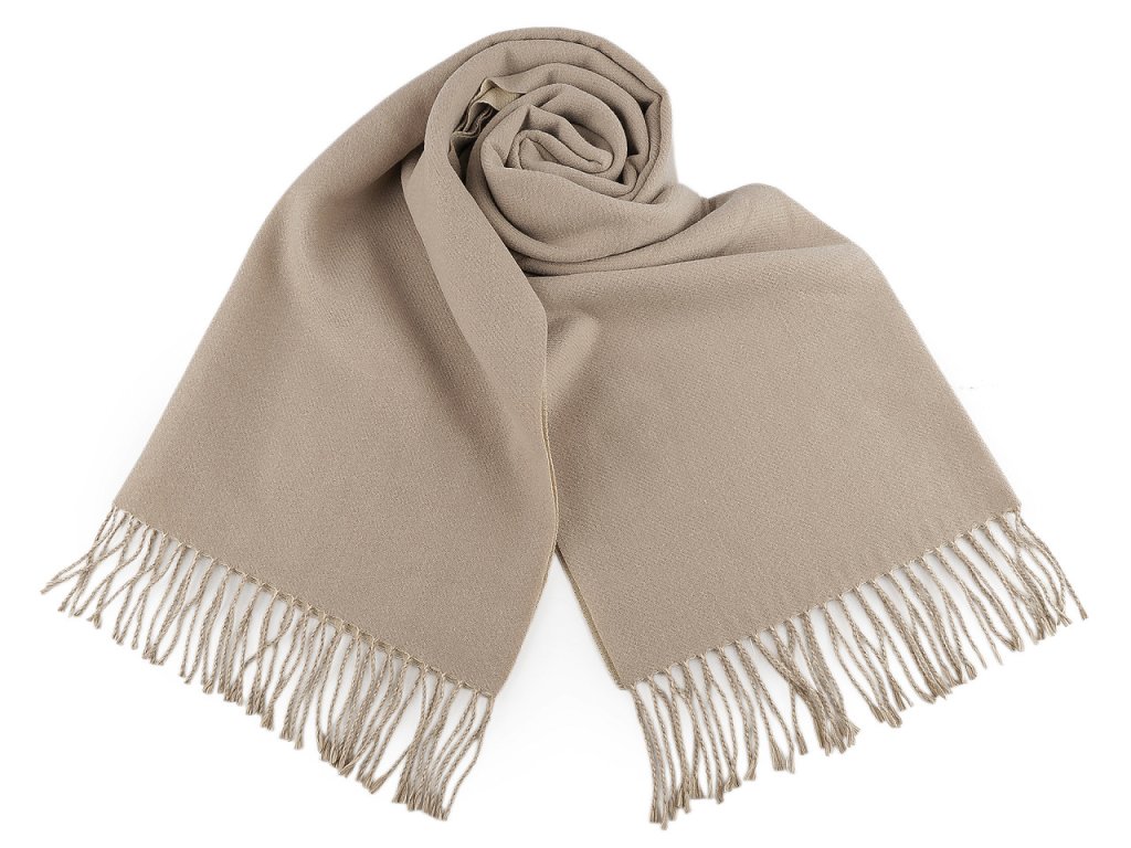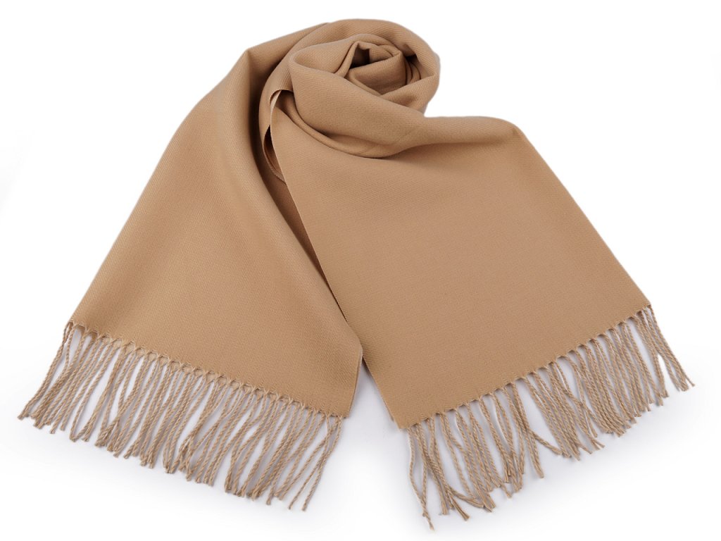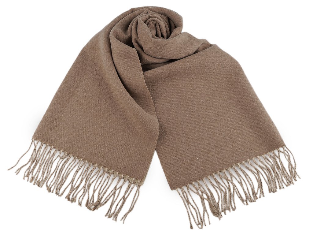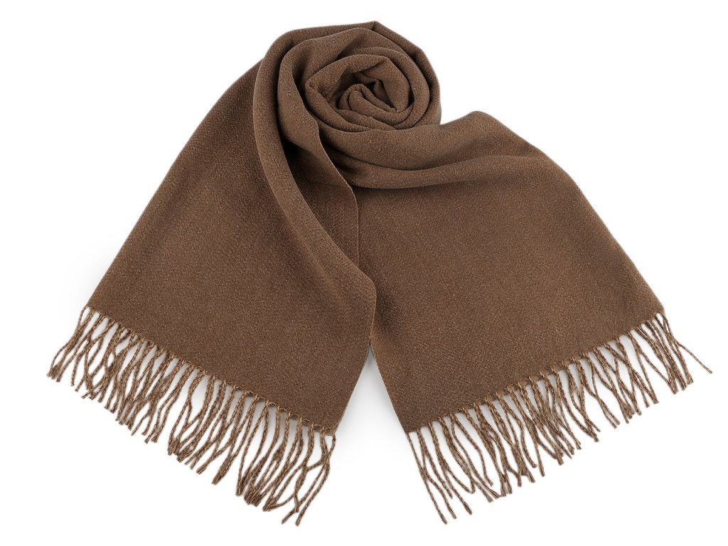 Velká jednobarevná šála vyšší gramáže je velice kvalitní, komfortně vás zahřeje v sychravých dnech. Zadní stranu má světlejší. Je vyrobená z materiálu příjemně hebkého na dotek. Hodí se ke kabátu, bundě i svetru. Na koncích je zakončená dlouhými třásněmi. Upozorňujeme zákazníky, že složení na štítcích se může lišit, materiál je polyester a viskóza.- Šířka: 65 cm