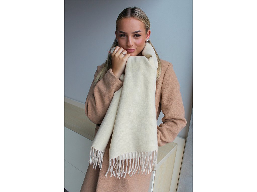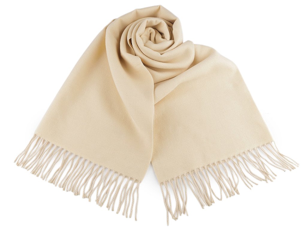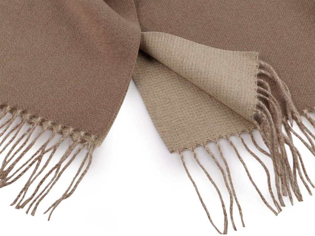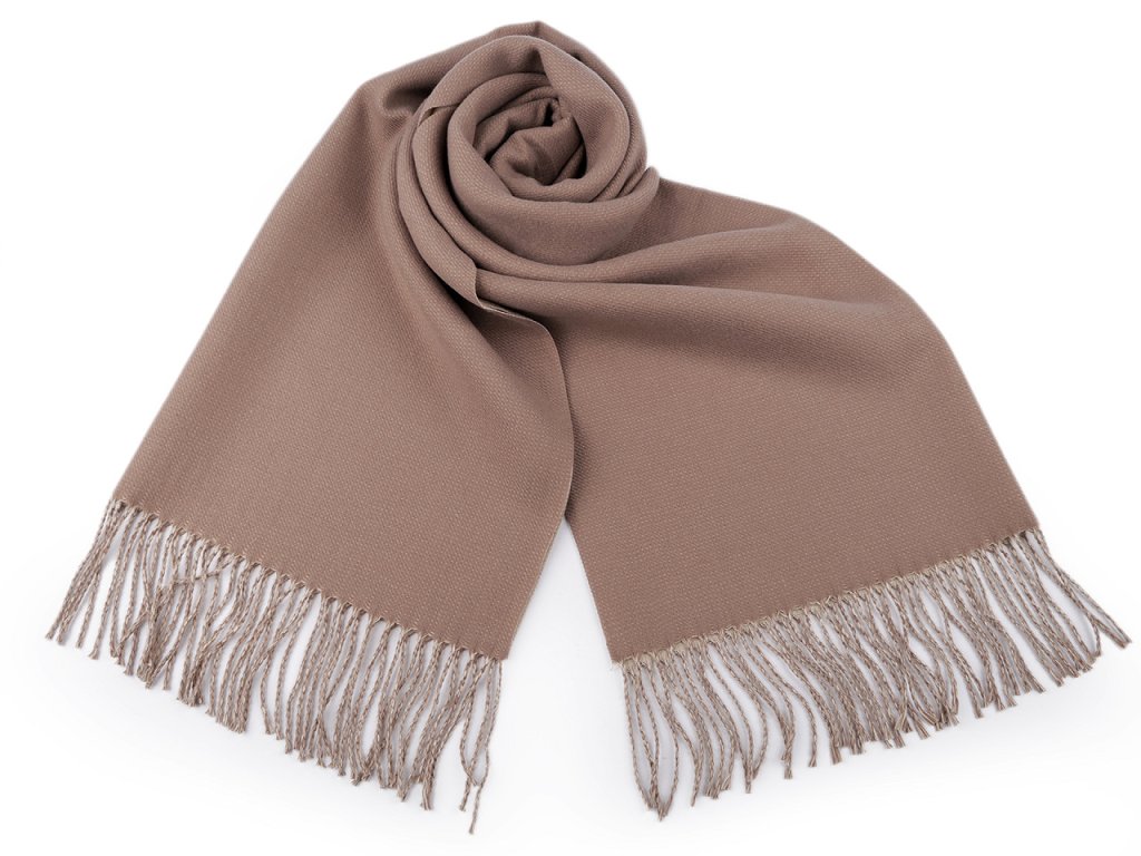 Velká jednobarevná šála vyšší gramáže je velice kvalitní, komfortně vás zahřeje v sychravých dnech. Zadní stranu má světlejší. Je vyrobená z materiálu příjemně hebkého na dotek. Hodí se ke kabátu, bundě i svetru. Na koncích je zakončená dlouhými třásněmi. Upozorňujeme zákazníky, že složení na štítcích se může lišit, materiál je polyester a viskóza.- Šířka: 65 cm